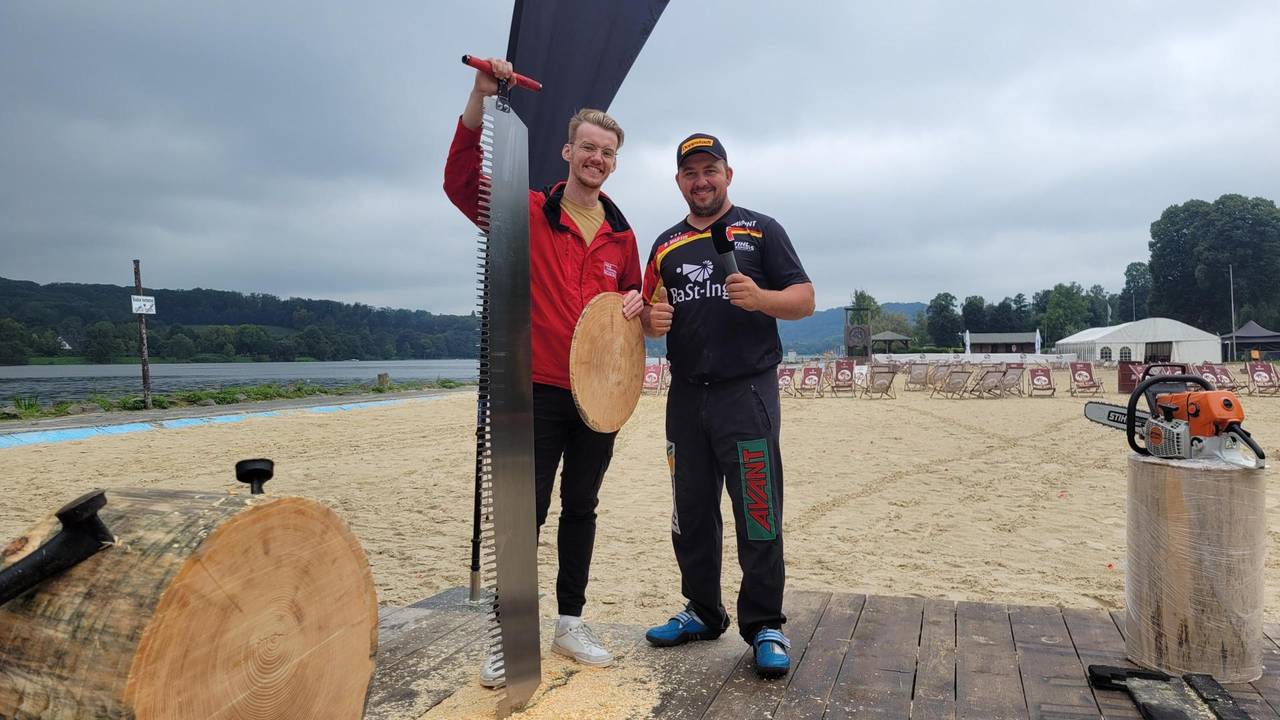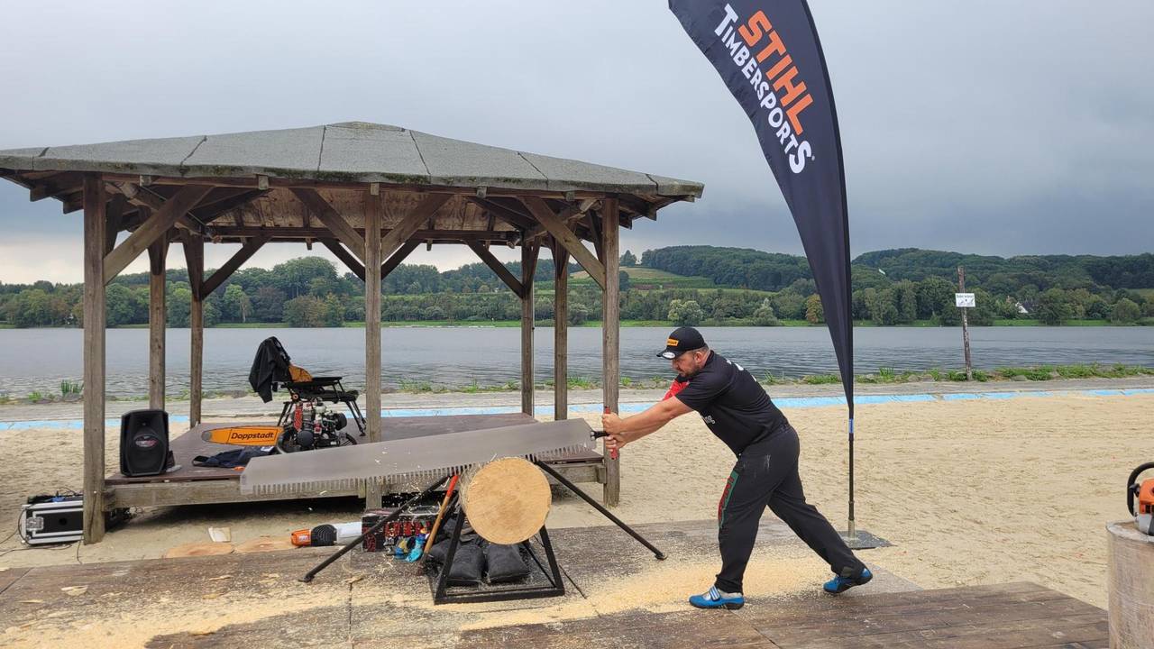 Holz hacken und Baumstämme sägen - und das in Rekordzeit. Das gibt es bald in Essen am Seaside Beach am Baldeneysee. An zwei Tagen findet im Herbst die sogenannte Stihl Timbersports Deutsche Meisterschaft 2023 statt. Beim Sportholzfällen gibt es verschiedene Disziplinen, in denen es darum geht, schnellstmöglich einen Baumstamm abzusägen bzw. abzuhacken. Die Profis schaffen das in wenigen Sekunden.