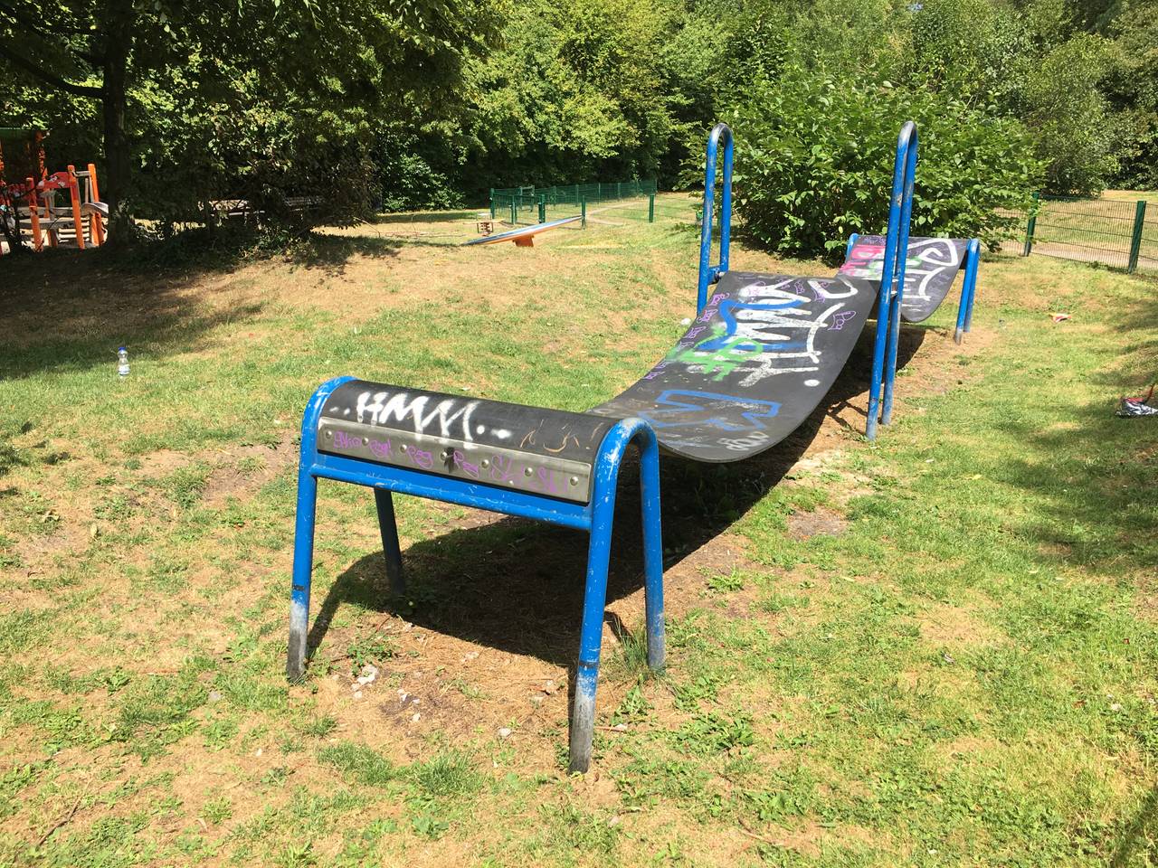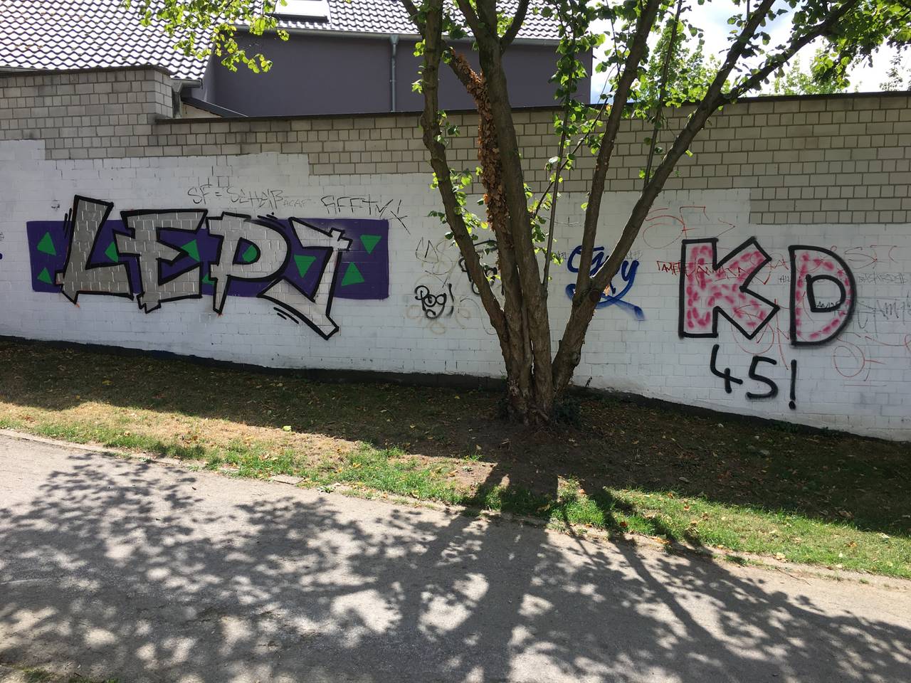 Besprühte Ecken in Kupferdreh sind nicht neu. Graffitis gibt es auf den Spielplätzen an der Poststraße und Byfanger Straße. Sie wurden auf Wände und auf die Spielgeräte geschmiert. Auch der neue Kupferdreher Bahnhof wurde besprüht.