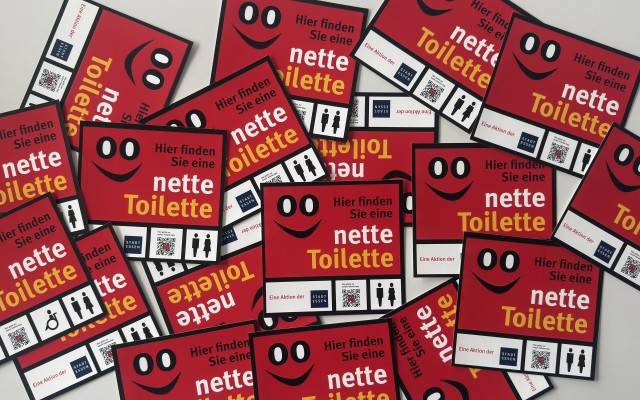 Das Angebot an öffentlichen Toiletten in Essen wächst. Es gibt immer mehr "nette Toiletten". Die könnt Ihr an den roten Aufklebern erkennen.