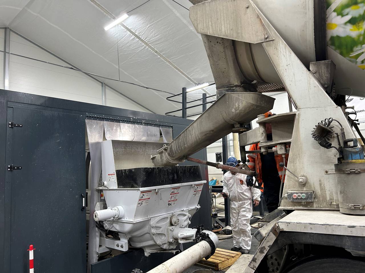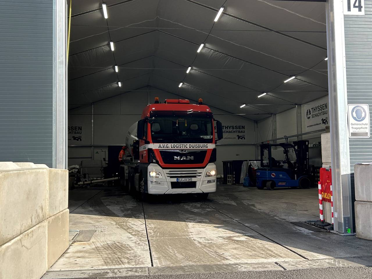 170 Jahre alt ist der Schacht 2 auf Zollverein, 90 Jahre der weltberühmte Schacht XII. Die beiden Schächte sind rund 1000 Meter tief und werden jetzt komplett mit Beton verfüllt. Dafür werden in den nächsten Monaten alle drei Tage 40 bis 45 Betonlaster die Zeche Zollverein anfahren und ihre Fracht abladen. Es wurden an beiden Schachtanlagen schalldichte Zelte aufgebaut. Da fahren die Betonlaster rein und werden an die Abpumpanlage angeschlossen und der Beton wird in den Schacht gepumpt. Rund 40.000 Kubikmeter Beton werden in den Schacht XII fließen. Schacht 2 ist im Durchmesser kleiner als Schacht XII, dort werden etwa 20.000 Kubikmeter gebraucht, um den Schacht zu verschließen. Danach wird das alte Fördergerüst im Schacht XII wieder eingebaut, erklärt Bergbauingenieur Stefan Roßberg im Gespräch mit Radio Essen-Moderatorin Anna Bartl.