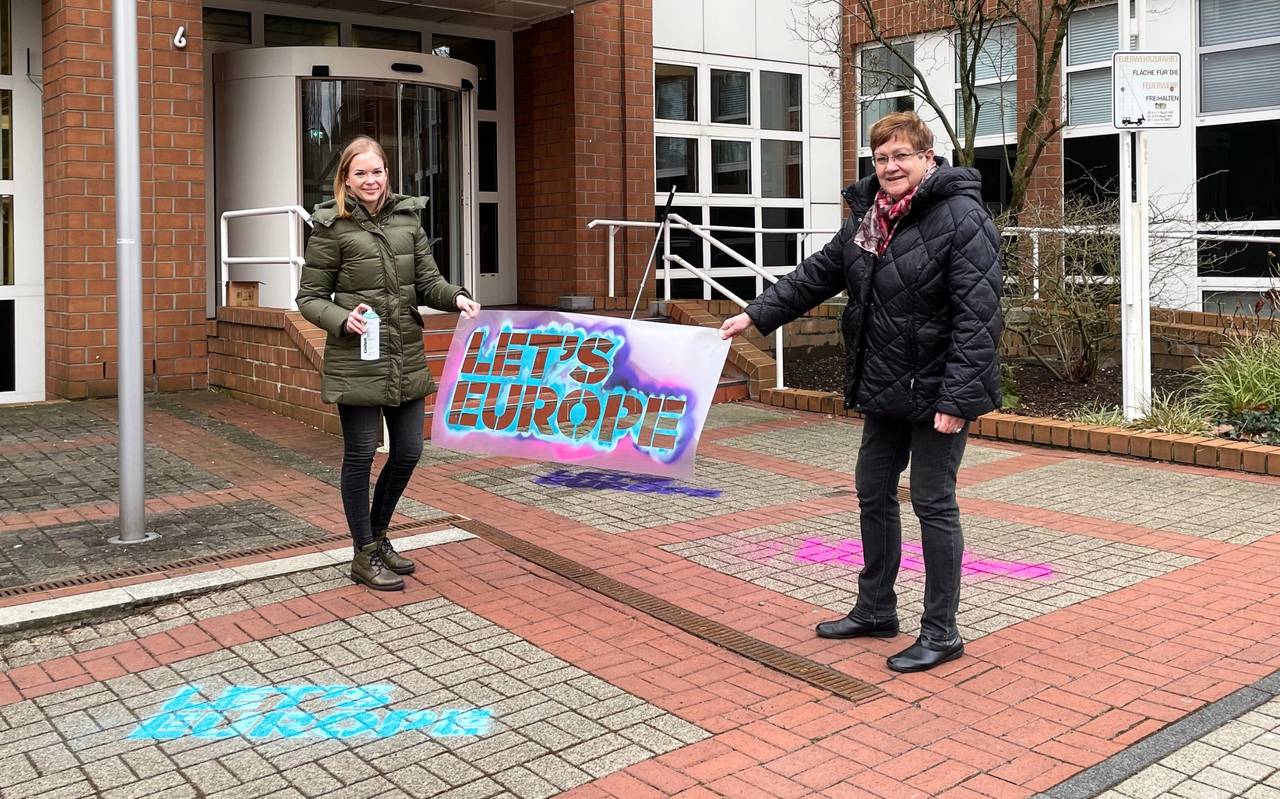 Essen macht mit bei einer Spray-Aktion, um auf die Wahl aufmerksam zu machen. In Essen ist der Schriftzug "Let’s Europe“ vor der Bibliothek und dem Europabüro an der Hollestraße zu sehen, außerdem beim Regionalverband Ruhr. Später sollen auch Busse und Bahnen dazukommen.