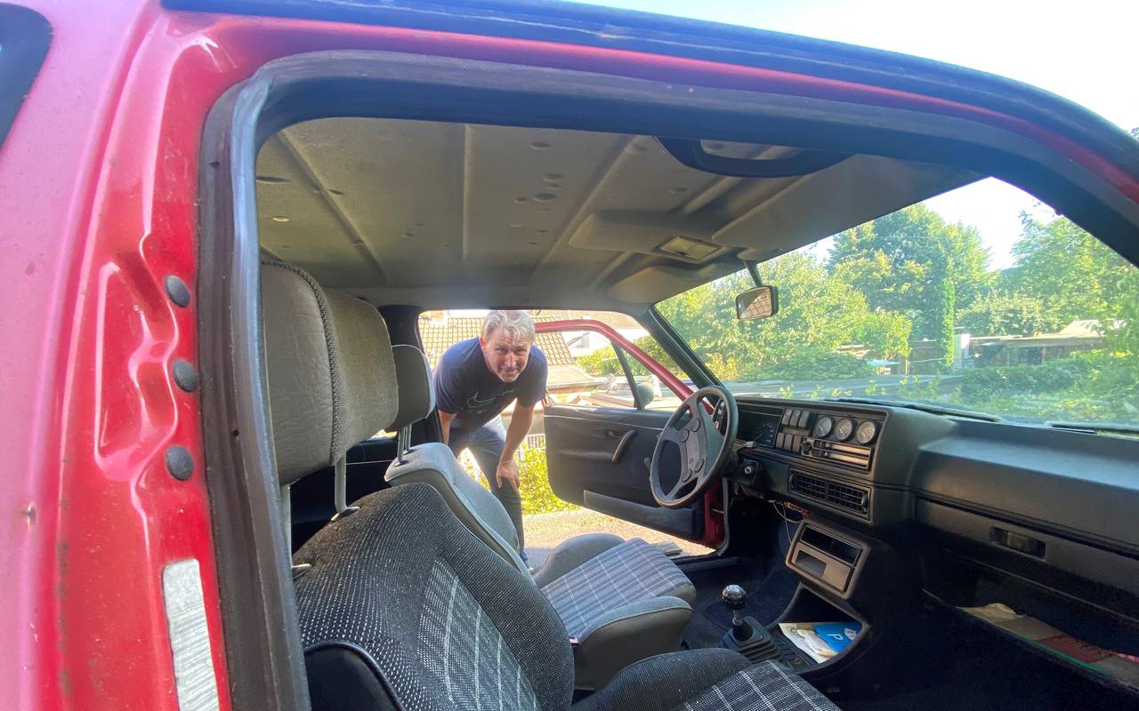 Der rote Golf ist Baujahr 1985. Er hatte 90 PS und hat damals 16.300 Mark gekostet. Jetzt fährt Thomas auch einen roten Golf. Der hat doppelt soviel PS, macht aber nicht doppelt Spaß. Der neue Golf steht immer vor der Garage. Denn in der Garage steht ein dritter Golf. Der ist auch rot und wird bald flott gemacht.