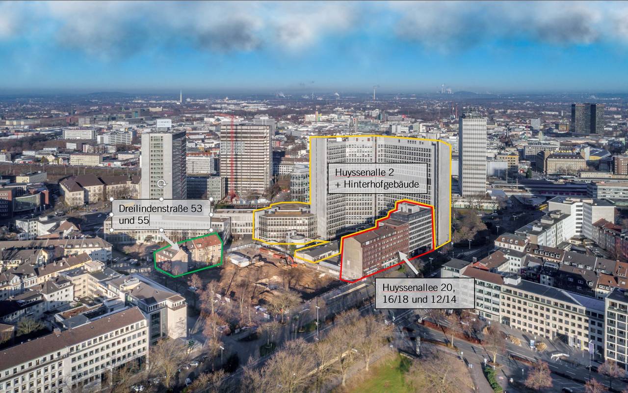 Im Südviertel startet der Abriss der ehemaligen RWE-Gebäude. Die markanten Gebäude an der Huyssenallee, die auch immer von der A40 aus zu sehen sind, werden bis Ende nächsten Jahres komplett verschwinden.
