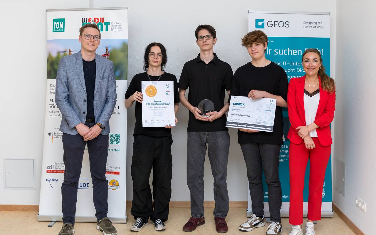 Schüler eines Berufskollegs in Essen haben den GFOS Innovationsaward 2024 bekommen. Damit wurden sie für ihre guten Leistungen im IT-Bereich ausgezeichnet.