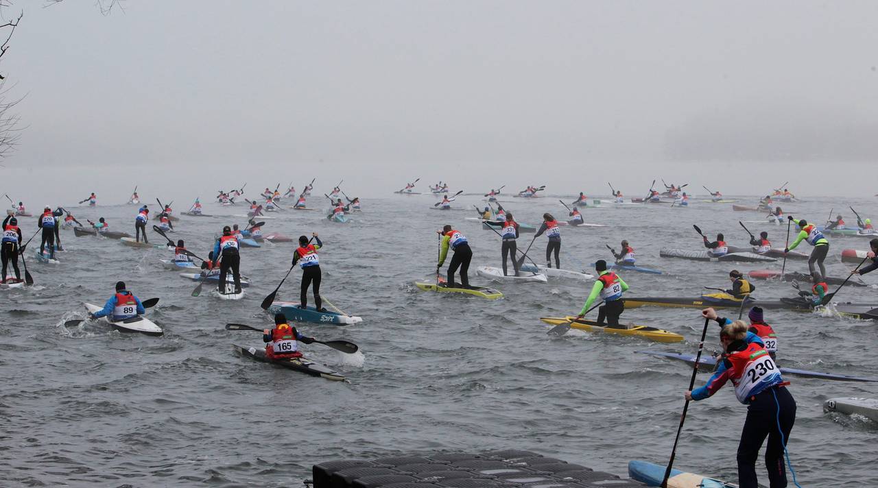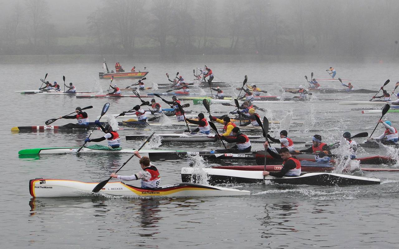 Einen gelungenen Saisonauftakt der Kanuten gab es am Samstag (18. Januar) in Essen auf dem Baldeneysee. Gut 140 hartgesottene Kanuten aus dem Bundesgebiet sowie den Niederlanden und Belgien trotzten den Minustemperaturen und traten zum zweiten Mal auf dem Baldeneysee vor dem Regattahaus beim Wintercup an. Dick vermummelt und überwiegend mit Schwimmwesten und Paddelhandschuhen ging es in Rennkajaks, Wildwasserbooten und auf StandUp-Boards bzw. Surf-Skiern von der Schüler- über die Jugend-, Junioren- bis hin zur Leistungsklasse aufs Wasser auf die bis zu 12 Kilometer lange Strecke. Am Ende war es wie im Vorjahr der Langstreckenspezialist Nico Paufler von der KG Essen, der sich vor seinem Bremer Cousin Marcel Paufler durchsetzen konnte.