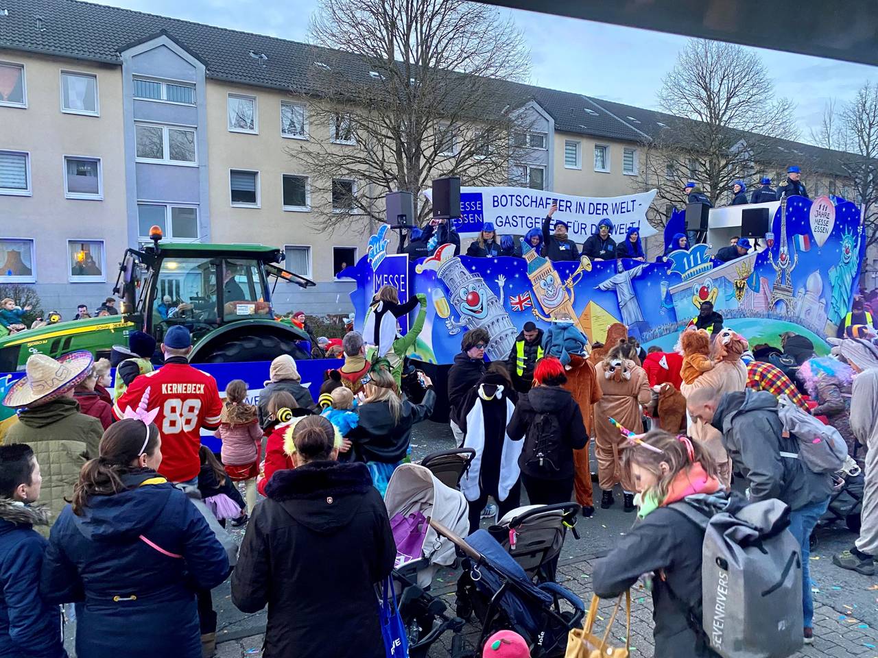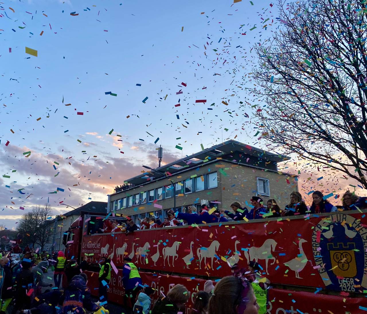 Durch die Verspätung in Rüttenscheid, konnte auch der Rosenmontagszug in Essen-Kupferdreh nicht pünktlich losziehen. Die meisten Wagen müssen erstmal quer durch die Stadt in den Essener Süden fahren. Der Kupferdreher Rosenmontagszug ist also nicht um 16:11 Uhr gestartet, sondern rund eine halbe Stunde später. Das hat aber auch dort nicht groß gestört. Familien und Kinder haben fleißig Kamelle gesammelt und trotz Verzögerung gab es den traditionellen Startschuss auf der großen Konfetti-Kanone am Anfang der Kupferdreher Straße.