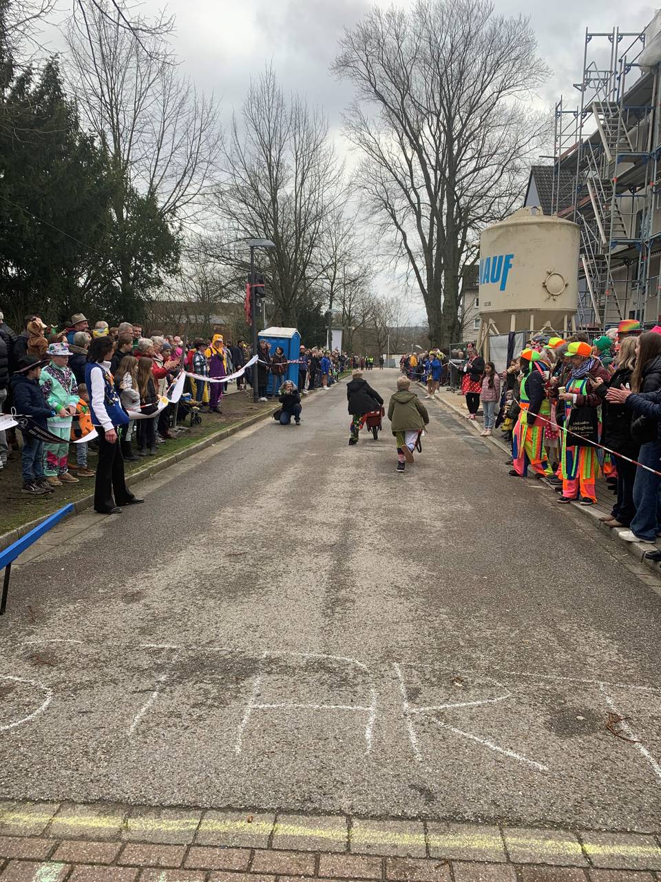 Schiebkarrenrennen in Essen-Heisingen: so hieß das Programm für hunderte Menschen am Karnevalssonntag. Immer zwei Menschen aus unterschiedlichen Vereinen sind gegeneinander angetreten, einen großen Schiebkarren einmal um den Block und dann ins Ziel zu bringen. Die Rennbahn war vor dem Alten Rathaus Heisingen aufgebaut. 12 Läufer sind angetreten und jeder Teilnehmer und jede Teilnehmerin musste bis zum Finale drei mal laufen. Im Finale standen dann die Besten, die alle Läufe bis dahin gewonnen haben. Als Gewinn gab es Pokale - einen Wanderpokal, und auch kleine Pokale zum behalten. Ausgetragen hat die Veranstaltung der G.K.G - der Verein GKG "Gemütlichkeit" Essen-Heisingen. Ehrenmitglied des Vereins, Heinz-Willi Serowy, sagt, das Schönste an der Veranstaltung sei, "dass die Heisinger auf die Straße kommen... wir haben ja viele zugezogene Heisinger, und dann sieht man sich endlich mal alle untereinander".