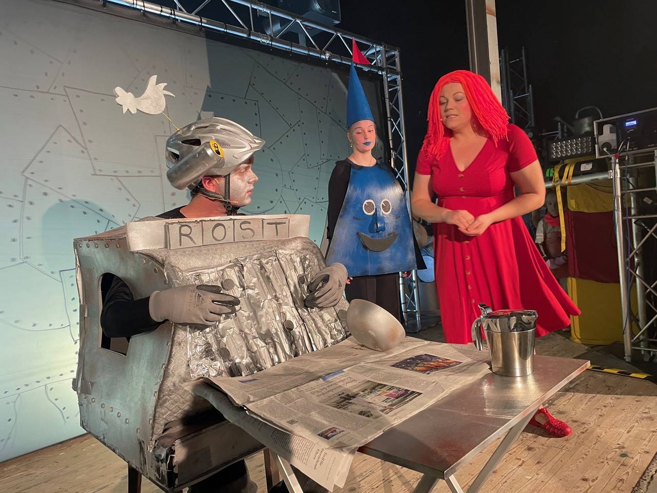 Drei Tage vor der Premiere von Ritter Rost am 3. November in Essen-Steele steht in der Theaterwerkstatt der Essener Volksbühne die Generalprobe des Kindermusicals an. Die Anspannung ist bei allen sehr groß. Sitzen die Kostüme und die Texte? Und was sagt Autor Jörg Hilbert dazu? Den hat Radio Essen-Stadtreporter Timm Schröder zur Generalprobe mitgebracht. Wird ihm die Fassung der Essener Volksbühne gefallen? Zehn Vorstellungen stehen im November und Dezember in Essen an. Einige davon sind bereits fast ausverkauft. Seit sieben Monaten laufen schon die Proben des 30-köpfigen Teams. Alle freuen sich, wenn es jetzt endlich losgeht.