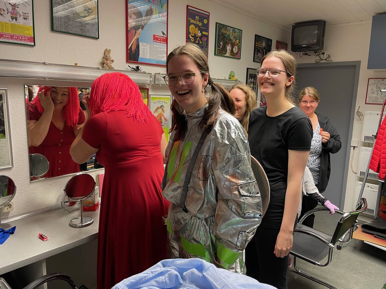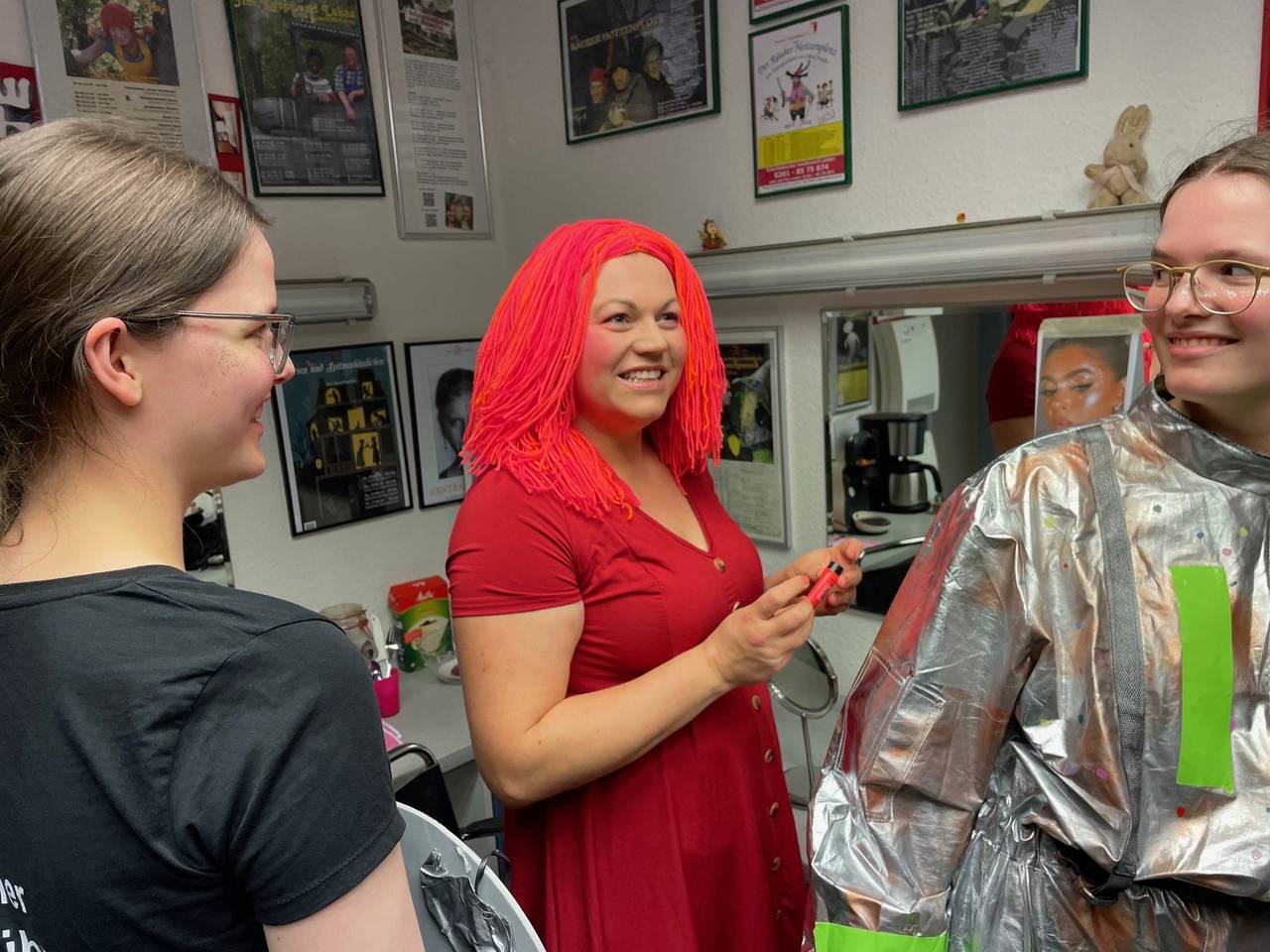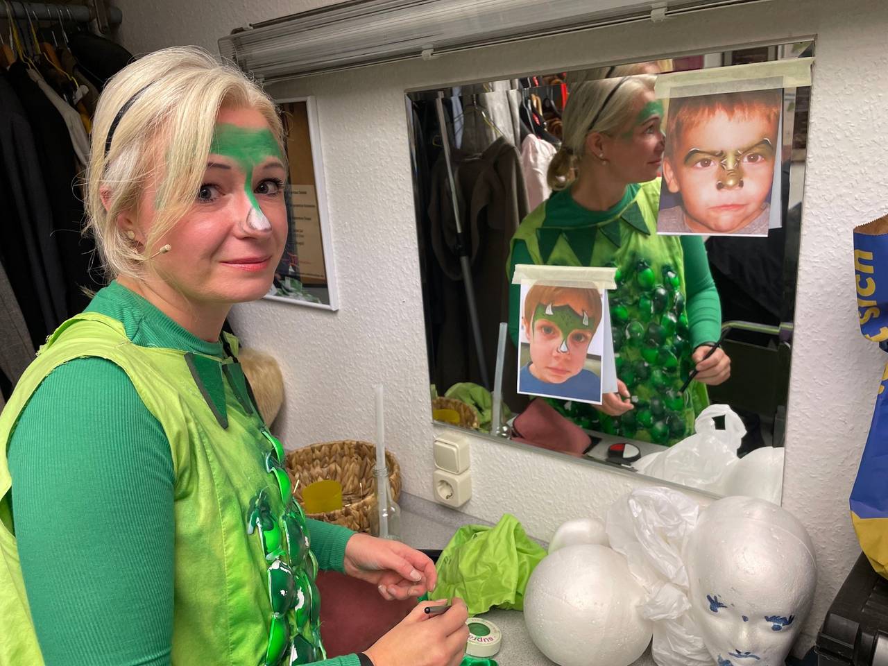 Was für ein Gewusel: Kurz vor dem Start der Generalprobe ist es noch hektisch in der Maske der Essener Volksbühne. Der Drache Koks wird noch geschminkt und auch das Burgfräulein Bö bekommt noch ein paar rote Backen. Ritter Rost ist schon fertig. Ein wenig nervös steht er auf der Probebühne einen Raum weiter. Die Scheinwerfer sind schon an und eine Nebelmaschine am Rand der Bühne stößt eine kleine Rauchwolke aus. Bei der anschließenden Mikrofon-Probe müssen alle kurz etwas sagen, auch wenn sie im Stück nicht sprechen, sondern nur singen. Beim ersten Versuch läuft nicht alles glatt. Ein schlechtes Vorzeichen? Nein. Das Team lässt sich nicht beirren, auch nicht von Autor Jörg Hilbert im Publikum. Das hatten wir so noch nie hier bei der Volksbühne und trotzdem freuen sich alle auf das Urteil des Erfinders von Ritter Rost. Während das Stück läuft, ist er mit Leib und Seele dabei. Er singt, lacht und klatscht mit. Schon oft hat er sein Stück gesehen und trotzdem ist es jedes Mal anders - auch heute bei der Essener Volkbühne. Vorher und nachher spricht er mit Radio Essen-Stadtreporter Timm Schröder und auch die Schauspieler kommen zu Wort.