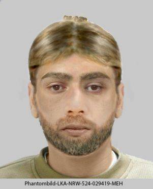 Die Polizei beschreibt den mutmaßlichen Täter als etwa 30 bis 40 Jahre alt, circa 1,70 bis 1,75 Meter groß und schlank. Seine Hautfarbe ist hell, seine Haare sind blond bis orange-blond und zu einem Dutt gewickelt. Außerdem hat der Tatverdächtige einen kürzeren Vollbart. Der Mann hat zum Tatzeitpunkt einen schwarzen Pullover und einer schwarzen Hose getragen. Außerdem sprach er fließend Deutsch.