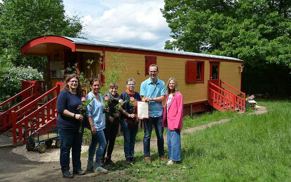"Nach unserem Morgenkreis im Bauwagen machen wir uns täglich auf den Weg in da nahe gelegene Waldgebiet" sagt Erzieherin Beate Jülicher. "Dort angekommen, erkunden wir gemeinsam mit den Kindern die Natur und erleben die Vielfalt des Waldes hautnah."