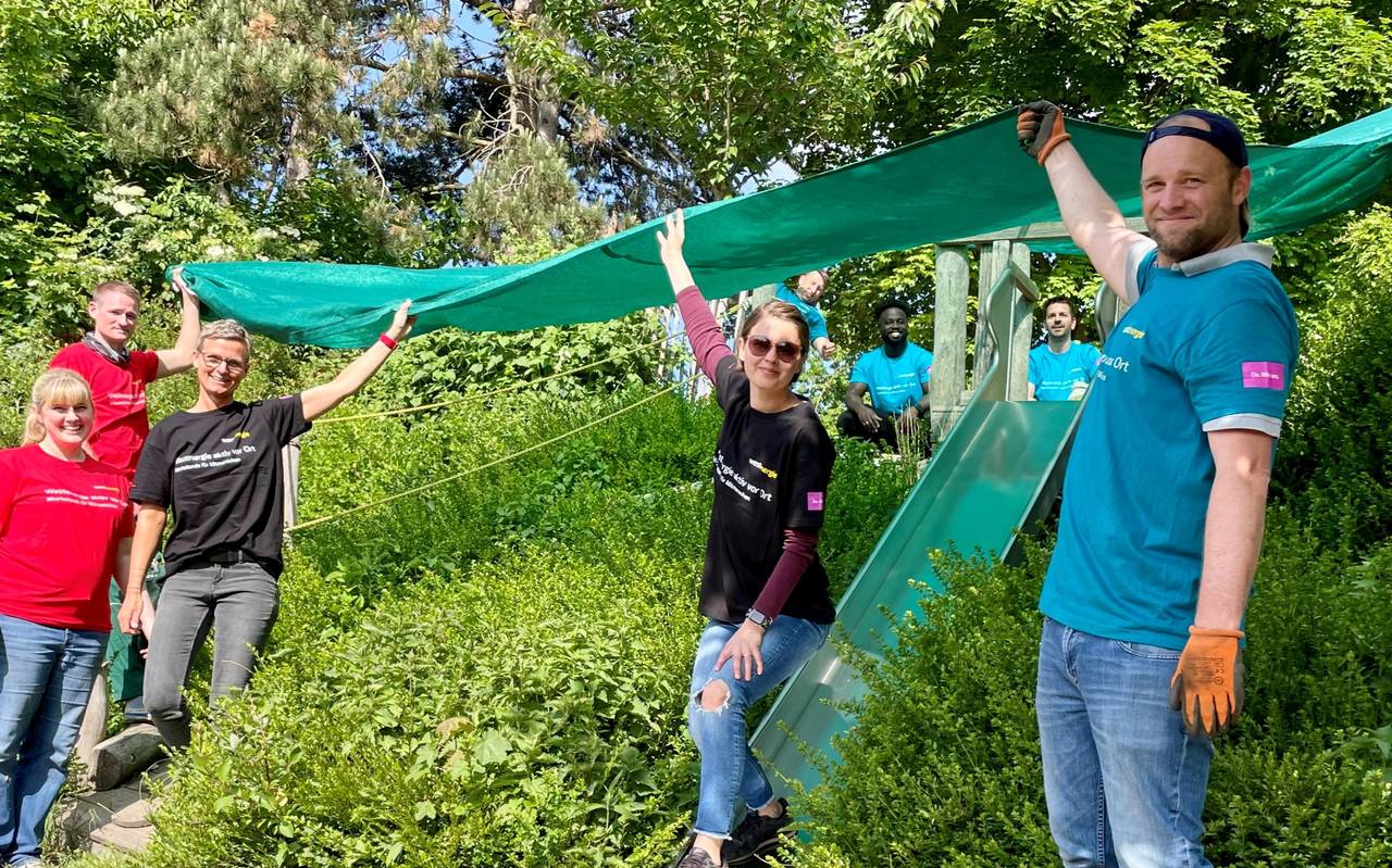 Ehrenamtliche Helferinnen und Helfer in Essen haben die Kita St. Barbara in Byfang jetzt sommertauglich gemacht. Gefördert wurde das Projekt durch die Mitarbeitendeninitiative Westenergie aktiv vor Ort. Bei der Initiative können Mitarbeitende von Westenergie ein Projekt umsetzen, was ihnen am Herzen liegt und das gute Miteinander in den Stadtteilen fördert. In Byfang hat das Team der Ehrenamtler den Außenbereich der Kita St. Barbara fit für den Sommer gemacht. Sie haben zum Beispiel über der Rutsche ein Sonnensegel angebracht. Die Kinder sollen so auch an heißen Sommertagen draußen spielen können.