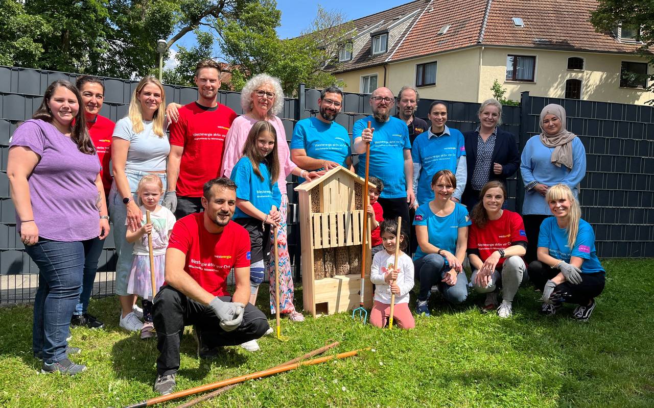 Mehr Grün mitten in der Stadt, das gibt es jetzt rund um die Kita Phantasia in Essen Frohnhausen. Auf dem Außengelände haben Helfer ein Insektenhotel und eine Streublumenwiese angelegt. Außerdem wurde das Außengelände mit Sichtschutzstreifen etwas von dem Wohngebiet rund um die Kita abgeschirmt.