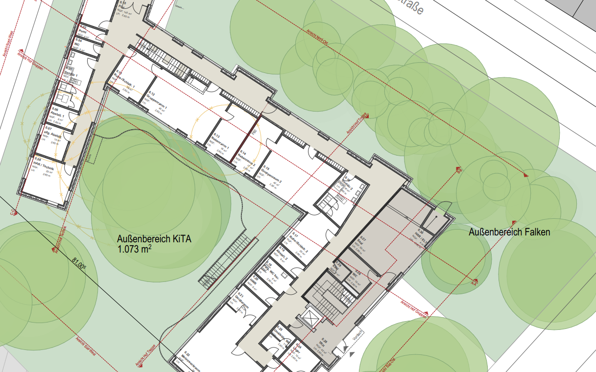 In Essen-Borbeck geht der Neubau der Kita an der Hülsmannstraße voran. Die ehemalige Kita an der Armstraße wird an der Ecke Hülsmannstraße / Weidkamp / Armstraße in ein neues Gebäude ziehen. Auf dieser Fläche müssen im Zuge der Bauarbeiten fünf Bäume gefällt werden, es sollen aber neue Bäume gepflanzt werden. Im Außenbereich des Neubaus ist aber kein Platz, deswegen sollen die neuen Bäume auf dem südlich gelegenen Spielplatz gepflanzt werden. Der wird bei den Bauarbeiten ausgebaut. Es wurde extra ein Baumsachverständiger beauftragt, der die Arbeiten begleitet. Nach Angaben der Stadt wurde bei der Planung viel Wert auf den Baumschutz gelegt, wodurch viele Bäume stehen bleiben können. Bei den Bäumen, die gefällt werden müssen, handelt es sich um einen Ilex, zwei Hainbuchen, einen Amberbaum sowie eine Winterlinde. Die Fällungen sollen zu Beginn der Woche (19. Februar) starten. Der Rat der Stadt hat den Baubeginn der Kita im November vergangenen Jahres beschlossen, auch ein Jugendzentrum soll in das Gebäude ziehen.