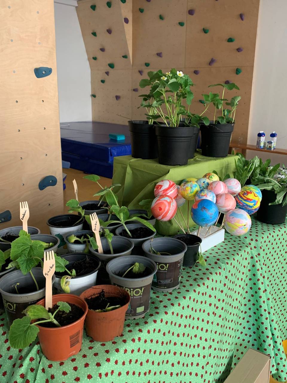 Die Pflanzen und das Gemüse, die Kräuter und die Blumen, die auf der Pflanzenbörse verkauft werden stammen aus Kinderhand - nicht aus Kinderarbeit, sondern aus dem naturpädagogischen Projekt "VKJ-Erlebnisgarten". Das wird in allen 24 KiTas des VKJ und in den Jugendeinrichtungen angeboten. Da lernen die Kinder den Umgang mit Blumen, Pflanzen und wie wichtig Bienen und genug Blumen für die Tiere sind. In den Kitas haben sie dafür u.a. Hochbeete angelegt.