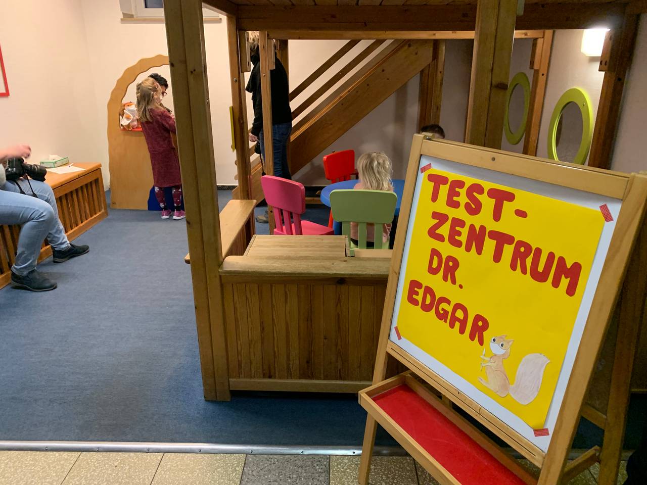 In der Kita Heßlerstraße in Altenessen lief der Start der PCR-Lollitests heute morgen spielerisch ab. Die Kinder wurden ins Testszentrum von Eichhörnchen Dr. Edgar geführt und lutschten dort 30 Sekunden auf dem Teststäbchen herum. Anschließend gab es noch eine kleine Unterschrift und dann waren die Kinder auch schon fertig. Die Kita-Leitung und auch Mayke Klams vom Jugendamt, die die Kita-Tests bei uns in Essen organisieren waren zufrieden mit dem Auftakt. In den nächsten Tagen soll es in allen Kitas in Essen PCR-Lollitests geben.