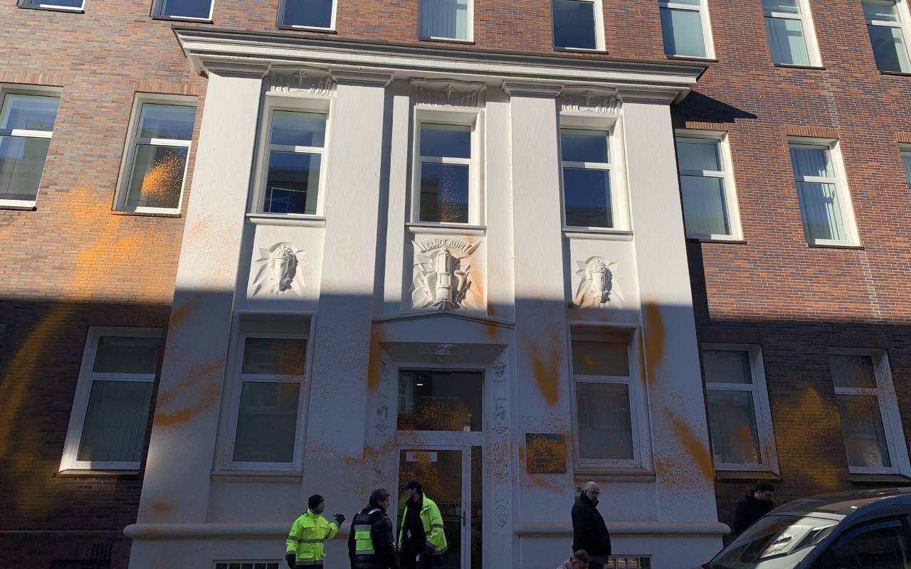 Klimaaktivisten sind heute erneut in Essen aktiv geworden und haben um 10 Uhr die Zentrale des Energiekonzerns RWE an der Altenessener Straße mit orangener Farbe besprüht. Dafür haben die Aktivisten umgebaute Feuerlöscher als Farbspritze genutzt. Auf einem Schild, dass die zwei Männer hielten stand "Art. 20 A. GG = Leben schützen". Die zwei Umweltschützer haben von der Polizei einen Platzverweis bekommen und sind wegen Sachbeschädigung angezeigt worden. Dabei gab es keine Auseinandersetzungen mit der Polizei, die Aktivisten verließen den Platz friedlich.