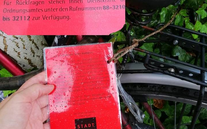 Wer so ein Knöllchen bekommt hat zuerst Gelegenheit, sein Fahrrad in 4 Wochen umzuparken. Lässt man es stehen muss man damit rechnen, dass das Ordnungsamt das Fahrrad entfernt und eine Zeit lang aufbewahrt. Nach drei weiteren Monaten wird es dann endgültig entsorgt.