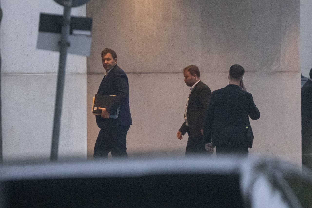 SPD-Fraktionschef Matthias Miersch hat auf dem Weg ins Kanzleramt Unterlagen dabei.