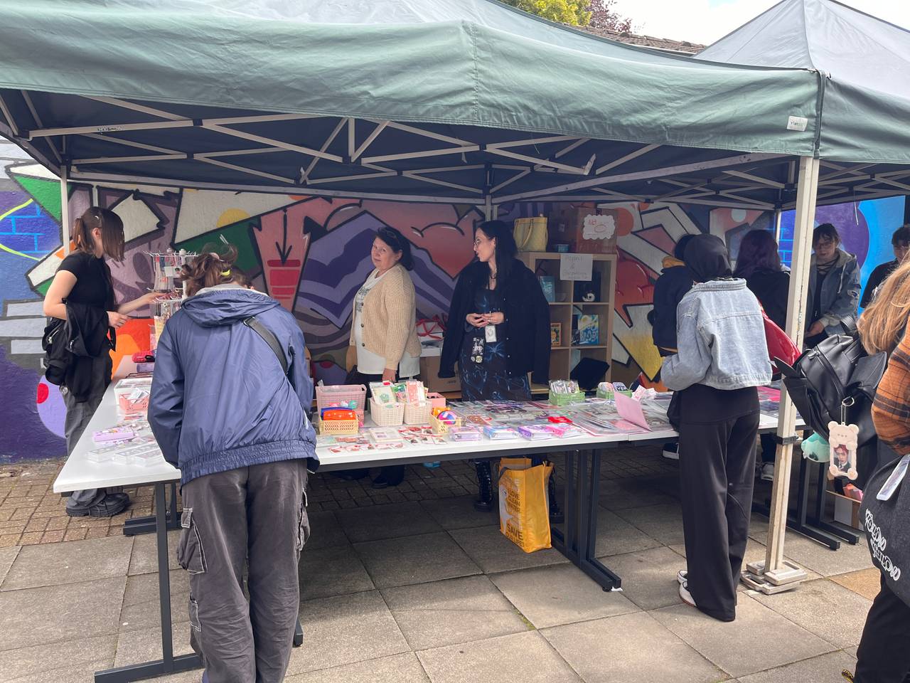 Neben der Musik und den Ständen draußen, fanden im Gebäude verschiedene Workshops statt. Hier konnten die Kinder K-Pop Tänze lernen oder beim Sprach- und Kalligrafie-Workshop teilnehmen. Bekannt ist in Korea vor allem das Toploader basteln, das sind kleine Hüllen die Beklebt werden und einen Bilderrahmen für K-Pop Sammelkarten ergeben. Zur Stärkung konnte man sich draußen am Essens- und Getränkestand anstellen. Hier war die Auswahl auch auf koreanische Spezialitäten beschränkt. Zu Trinken konnte man Bubble-Tea bestellen. Zu Essen gab es zum Beispiel Mandu, das sind koreanische Teigtaschen mit Kohl-Füllung. Oder auch sogenannte Tteokbokki, Reiskuchen mit einer klassischen scharfen oder milden Soße.