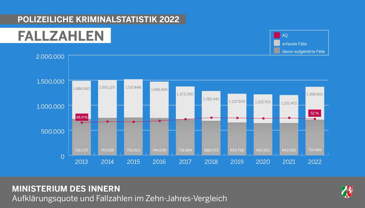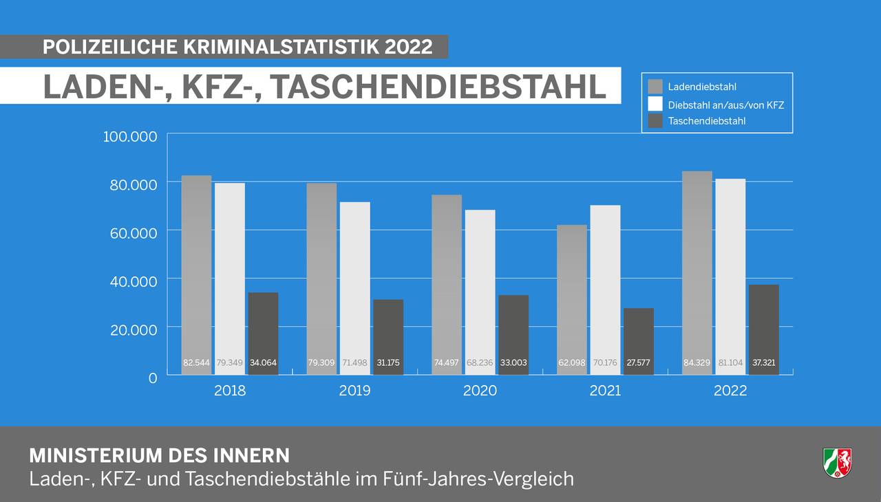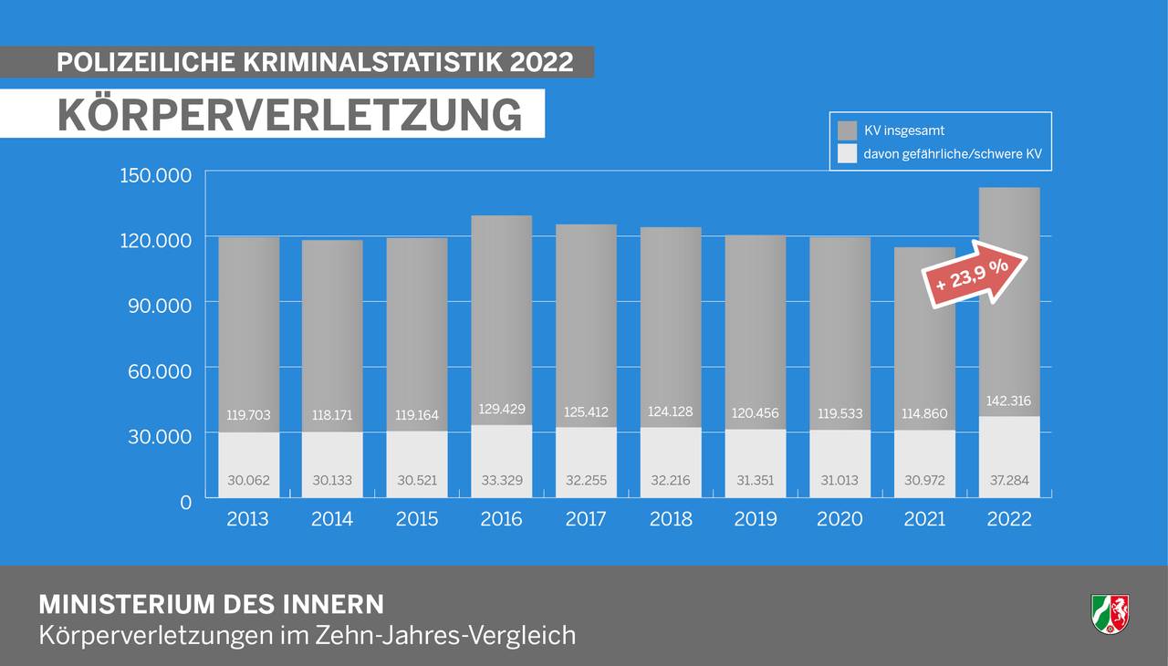 Insgesamt ist die Kriminalität in Nordrhein-Westfalen aber gestiegen - erstmals nach sechs Jahren. "Das ärgert mich", sagte NRW-Innenminister Herbert Reul in Düsseldorf bei der Vorstellung der Kriminalitätsstatistik 2022.