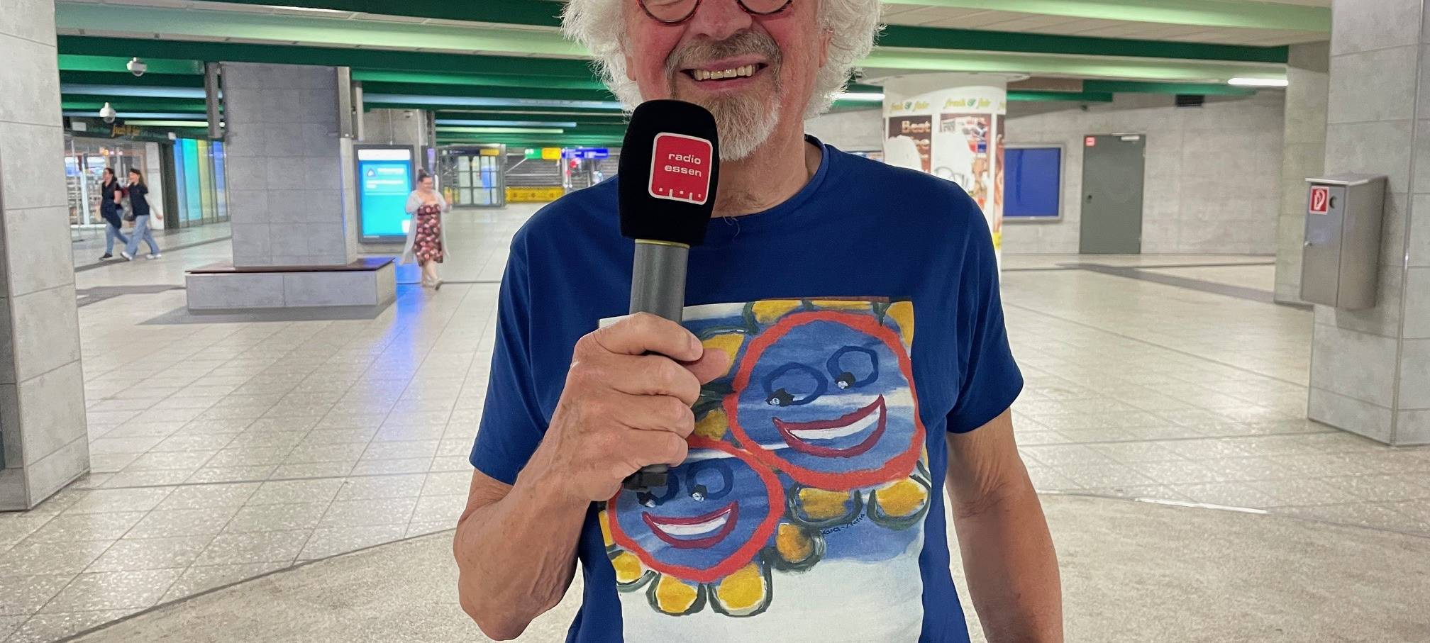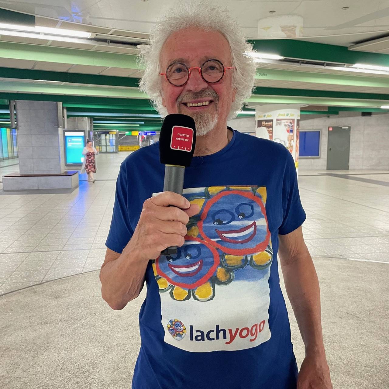 Zum Lachen geht Willi Hagemann aus Werden am Freitag nicht in den Keller, sondern in den Biergarten. Hier lacht und musiziert er mit den Besuchern zwei Stunden lang für den guten Zweck. Hagemann ist seit über zehn Jahren Lachyoga Trainer. An vielen unterschiedlichen Orten und mit ganz vielen unterschiedlichen Menschen hat er schon zusammen gelacht. Mit Radio Essen-Stadtreporter Timm Schröder ging es in die U-Bahnhaltestelle unter dem Rathaus Essen. Hier hat Willi Hagemann erstmal die Akustik ausprobiert. Nicht schlecht, aber es geht auch besser.