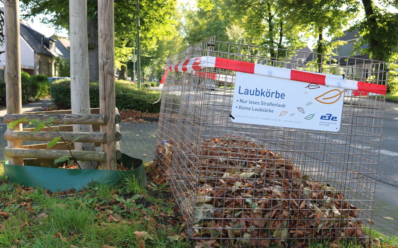 Auch in Essen wird es langsam Herbst, die Bäume verlieren ihre Blätter. Deshalb kommen jetzt nach und nach die Laubkörbe der Entsorgungsbetriebe (EBE) wieder an die Straßen.
