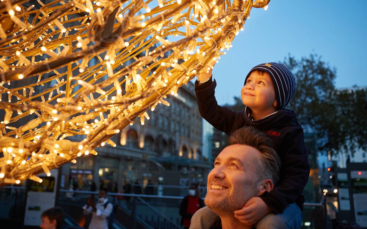 Am Sonntag starten die Essener Lichtwochen bei uns in der Innenstadt. In diesem Jahr gibt es auch wieder die Themenbilder. In der Nähe der Marktkirche leuchten ein Themenbild zur Goldene Madonna und eins zum Essener Stadtwappen. Auch der Tierpark aus Licht steht wieder. Um 18 Uhr eröffnet Oberbürgermeister Thomas Kufen die Lichtwochen vor der Marktkirche. Um 19 Uhr gibt es ein Feuerwerk auf dem Kennedyplatz. Die Lichtwochen gehen bis zum 6. Januar. Parallel dazu gibt es einen verkaufsoffenen Sonntag. Die Geschäfte am Limbecker Platz haben deshalb von 13 bis 18 Uhr geöffnet.