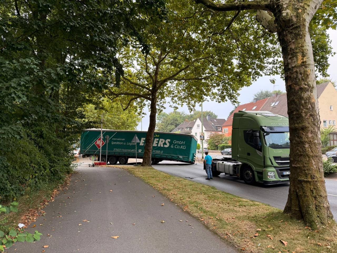 Ruhrallee in Essen: LKW steht quer