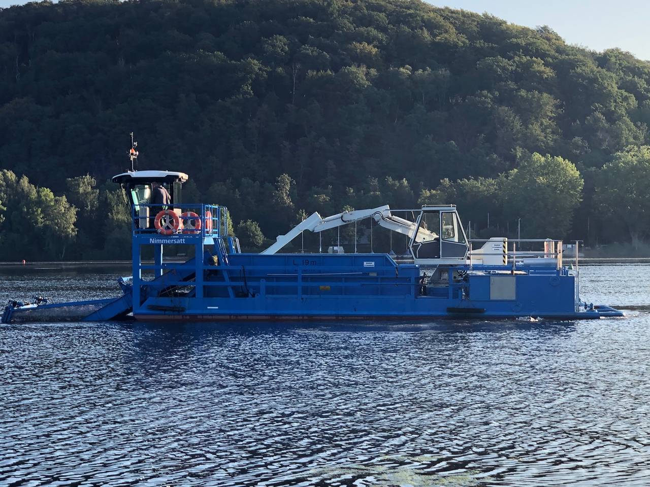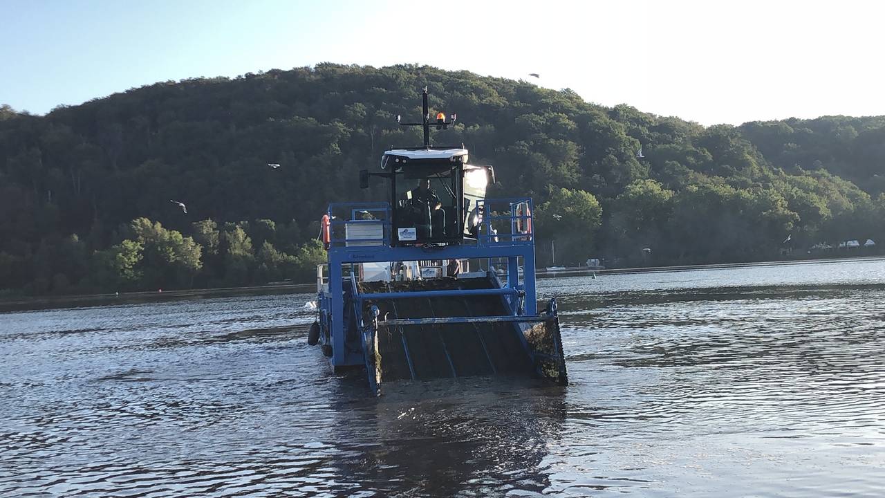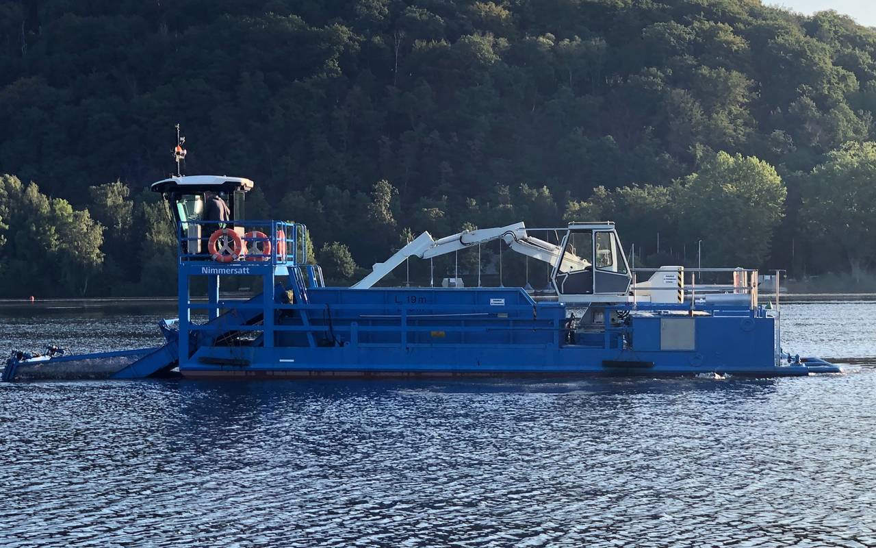 Das Mähboot ist jeden Tag von Montag bis Freitag acht Stundne lang im Einsatz. Geplant ist, dass der Einsatz des Mähboots noch bis Ende September andauert.