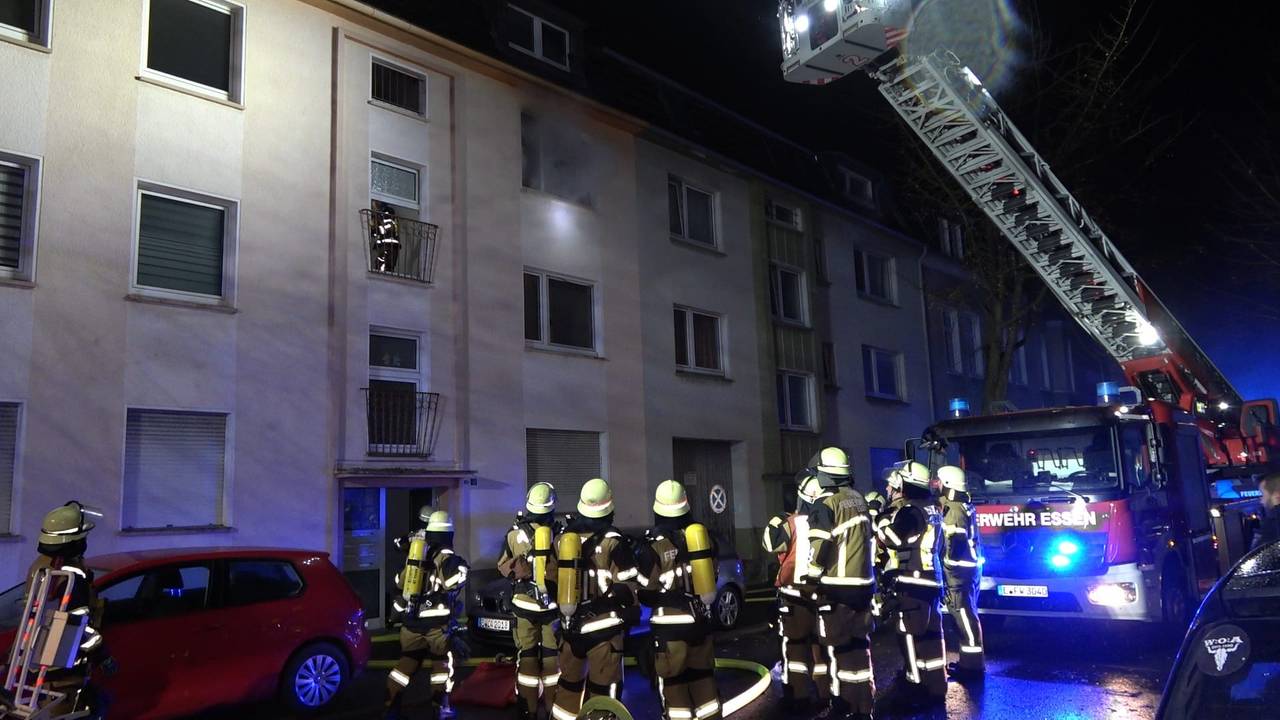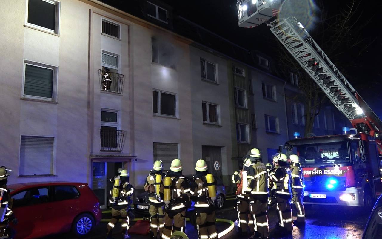 Einige Stunden vorher hatte die Feuerwehr einen anderen Einsatz in Altenessen. Auf der Pielstickerstraße hat es in einer Wohnung eines Mehrfamilienhauses gebrannt. Als die Einsatzkräfte gegen 17.30 Uhr dort ankamen, zog schon dichter Rauch aus dem zweiten Stock. Der Bewohner konnte sich noch selbst ins Freie retten, atmete dabei aber Rauchgase ein. Ins Krankenhaus wollte er nicht. Die Einsatzkräfte gingen unter Atemschutz in die Wohnung. Dort sahen sie, dass ein Zimmer komplett in Flammen stand. Sie löschten es von innen, gleichzeitig löschten andere Einsatzkräfte die Flammen von außen über eine Drehleiter.