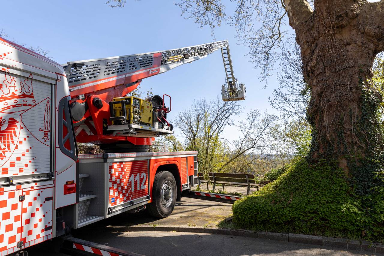 Die Feuerwehr Essen rückte am Samstagmittag zu einem Einsatz an der Schnütgenstraße in Steele aus. Direkt in der Nähe des Steeler Stadtgartens in einem kleinen Waldstück lag das Motorrad an einem Abhang. Die Polizei Essen hatte es dort entdeckt. Weit und breit war aber niemand zu sehen, der das Motorrad gefahren hat. Die Feuerwehr Essen suchte mit einer Drehleiter und einer Drohne den Abhang nach einem möglicherweise verletzten Fahrer oder einer verletzten Fahrerin ab. Die Rettungskräfte konnten aber niemanden entdecken. Die Polizei hat das Motorrad sicher gestellt und über die entsprechenden Kennzeichen konnte sie den Eigentümer ermitteln. Weil der nicht in Essen war, hat seine Mutter das Motorrad für ihn wieder entgegen genommen. Hinweise auf einen Unfall hat die Polizei nicht. Sie ermittelt jetzt wegen Diebstahls.