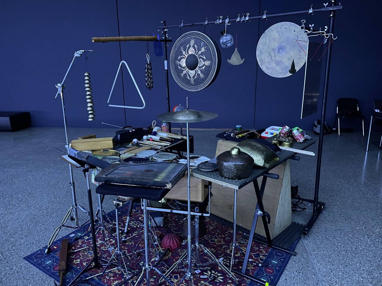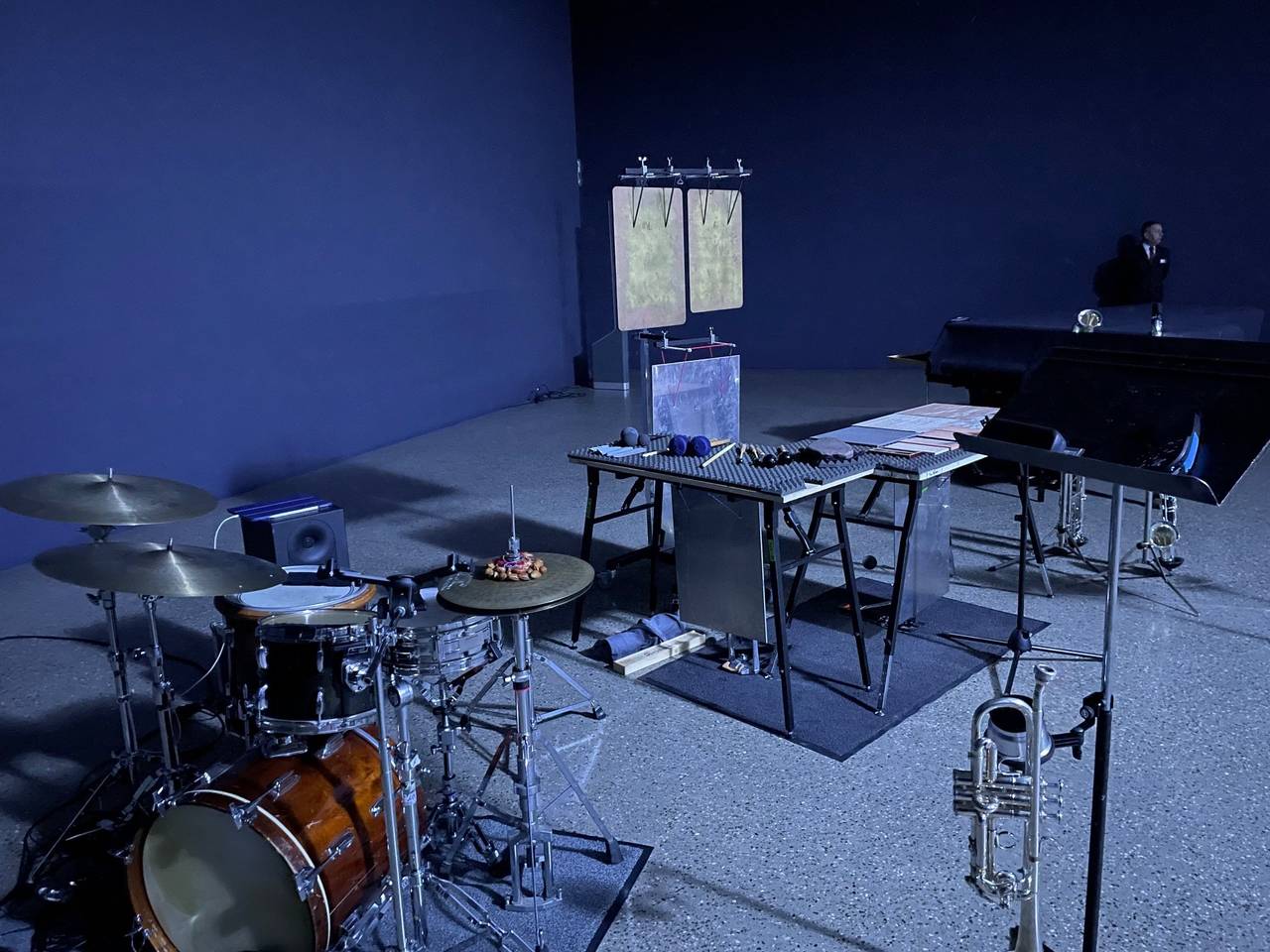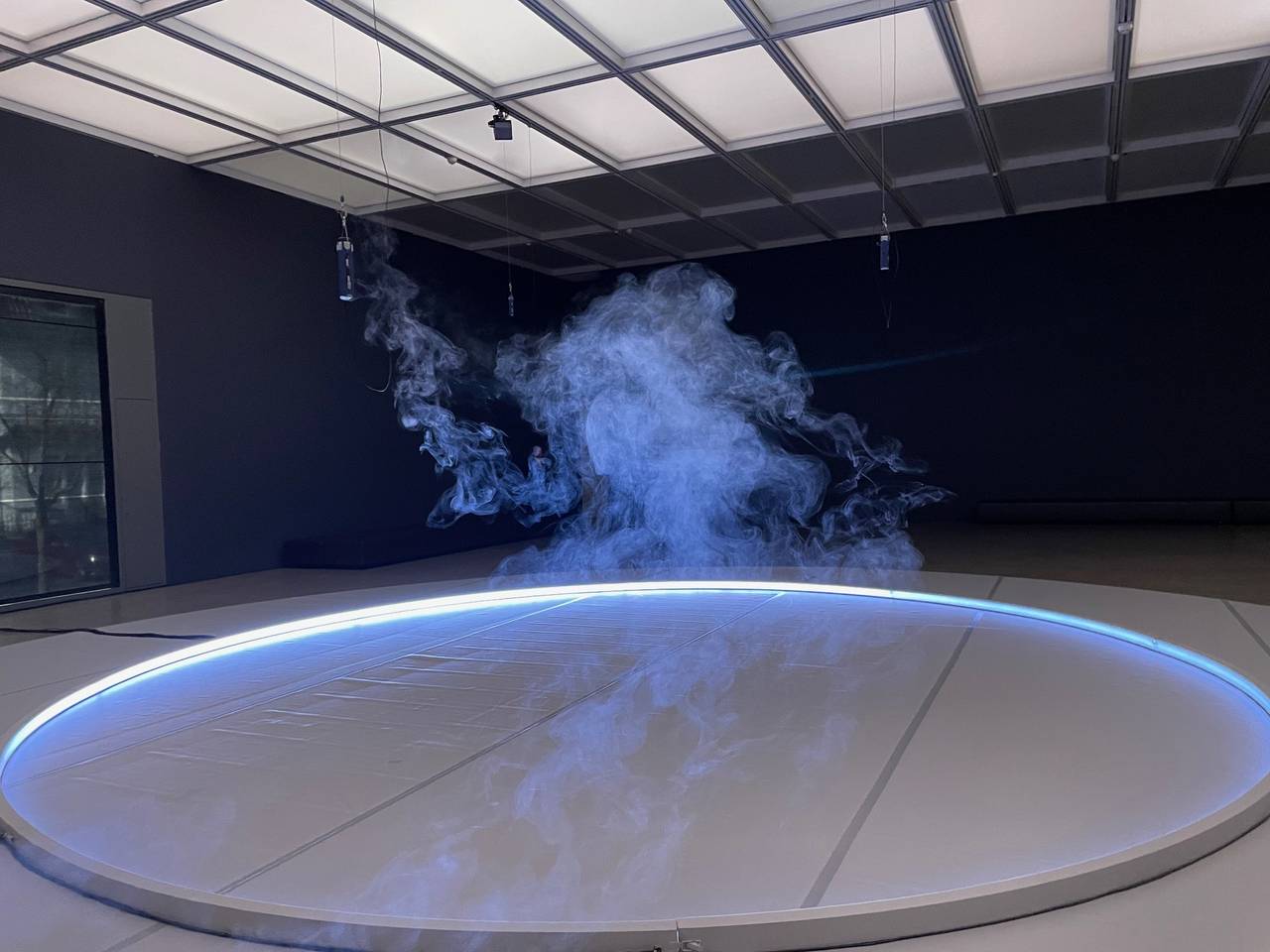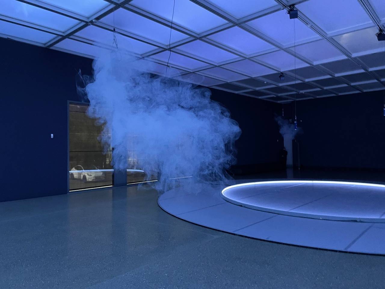 Mit einem Hubsteiger werden noch die letzten Installationen befestigt als Radio Essen-Stadtreporter Timm Schröder zusammen mit Direktor Peter Gorschlüter als einer der ersten den großen Saal des Museum Folkwang betritt. Winzige Nebelmaschinen hängen im ganzen Raum verteilt von der Decke herab. Sie fahren rauf und runter und hinterlassen dabei die sanften Gebilde von schwebenden Wolken. Dazu klingen immer wieder neu gemischte Sounds aus allen vier Ecken des Saals. Stereo war gestern. Heute gibt es Quadrophonie. Dazu leuchtet die Lichtdecke immer wieder anders. Ein Stück weiter hinten im Raum ist ein großer Lichtkreis auf dem Boden der Halle. Es sollen kosmische und irdische Zyklen dargestellt werden. Die werden jeden Tag neu angepasst. Dazu sind auch über 140 Tänzer und Musiker mit im Boot. Die Idee ist, dass die Besucher den Bezug zu Raum und Zeit verlieren. Live-Art hat im Museum Folkwang eine lange Tradition. Eine Produktion in dieser Größe gab es hier noch nie und sie ist auch weltweit einmalig. Produktionsleiter Wayne Götz hat großen Respekt vor dieser großen Aufgabe. Viele Dinge werden sich auch erst in den nächsten Tagen und Wochen ergeben.