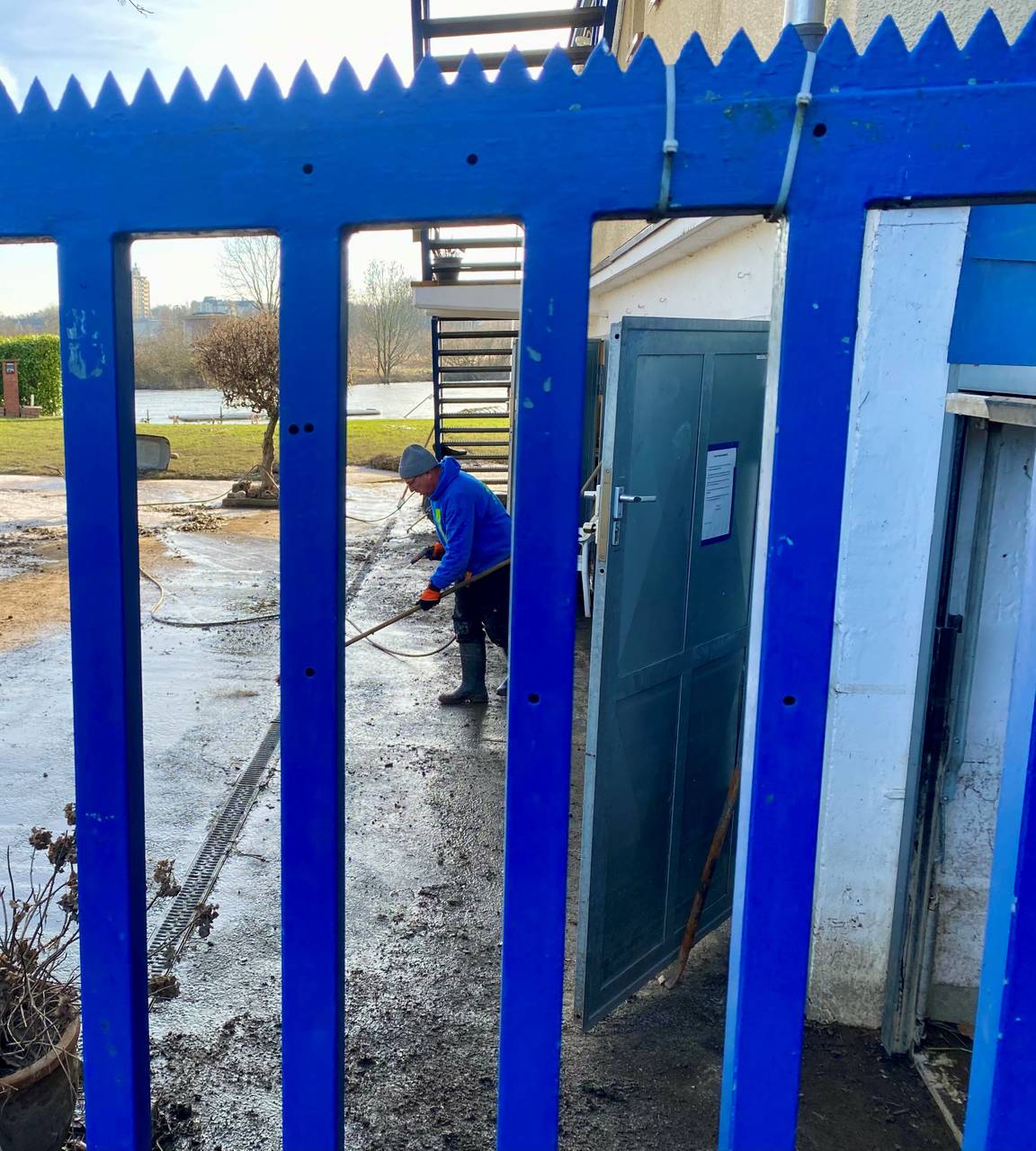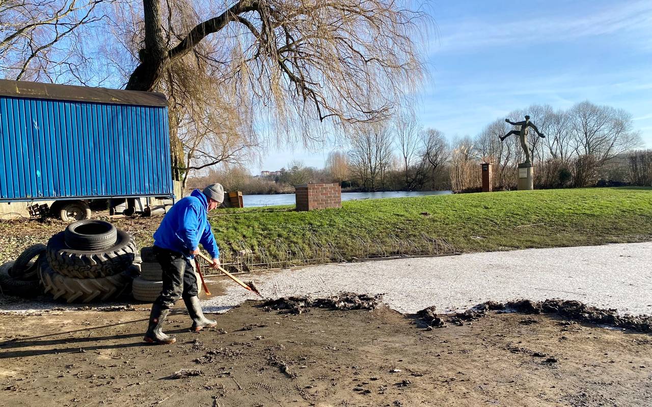 Das Hochwasser in Essen zieht sich immer mehr zurück. Der Leinpfad ist wieder freigegeben und Verkehrsmelderinnen und Verkehrsmelder berichten, dass auch die Kurt-Schuhmacher-Brücke zum Wochenstart wieder befahrbar ist. Doch auch die ein oder anderen Überbleibsel kommen jetzt zum Vorschein. Das Ruhrufer rund um das Freibad in Steele ist zum Beispiel voller Schlamm. Deshalb laufen die Aufräumarbeiten in Essen. Der Verein Steele 11 versucht den ganzen Schlamm vom Freibadgelände zu bekommen. Damit der nicht bei den kalten Temperaturen festfriert, haben einige Freiwillige am Montag (08.01.) direkt angefangen den Dreck und den Schlamm wegzuschüppen. Bei eisigem Wind und Minus 3 Grad ist das aber keine leichte Arbeit, sagte Vereinsmitglied Dirk Staats unserem Radio Essen-Stadtreporter.