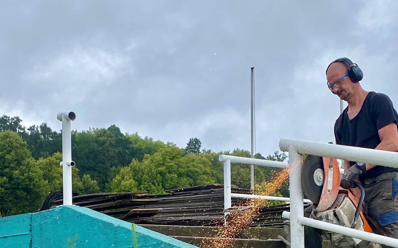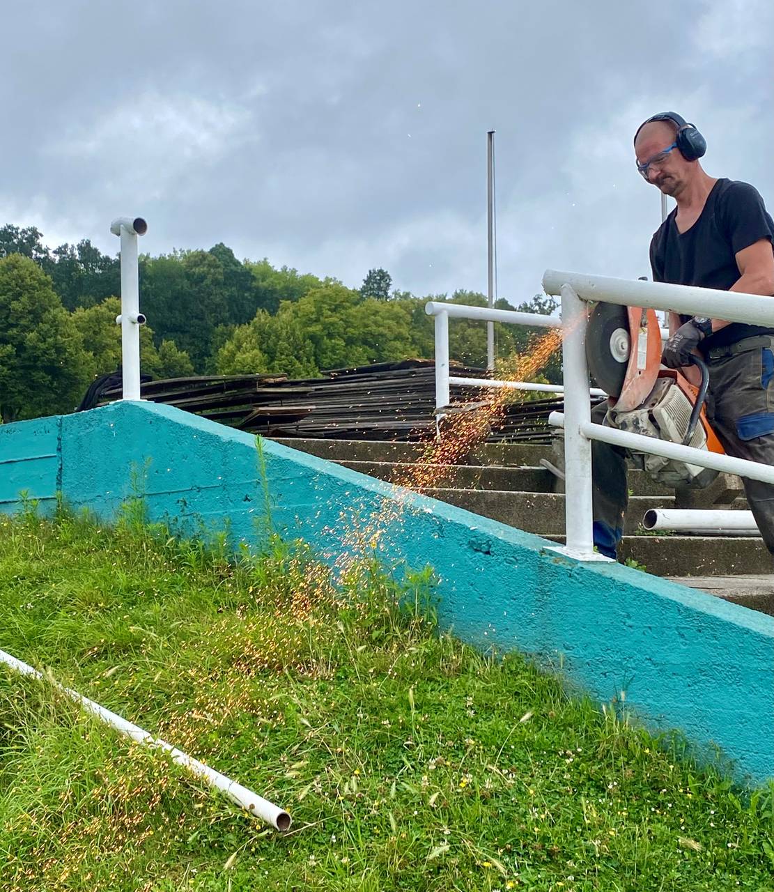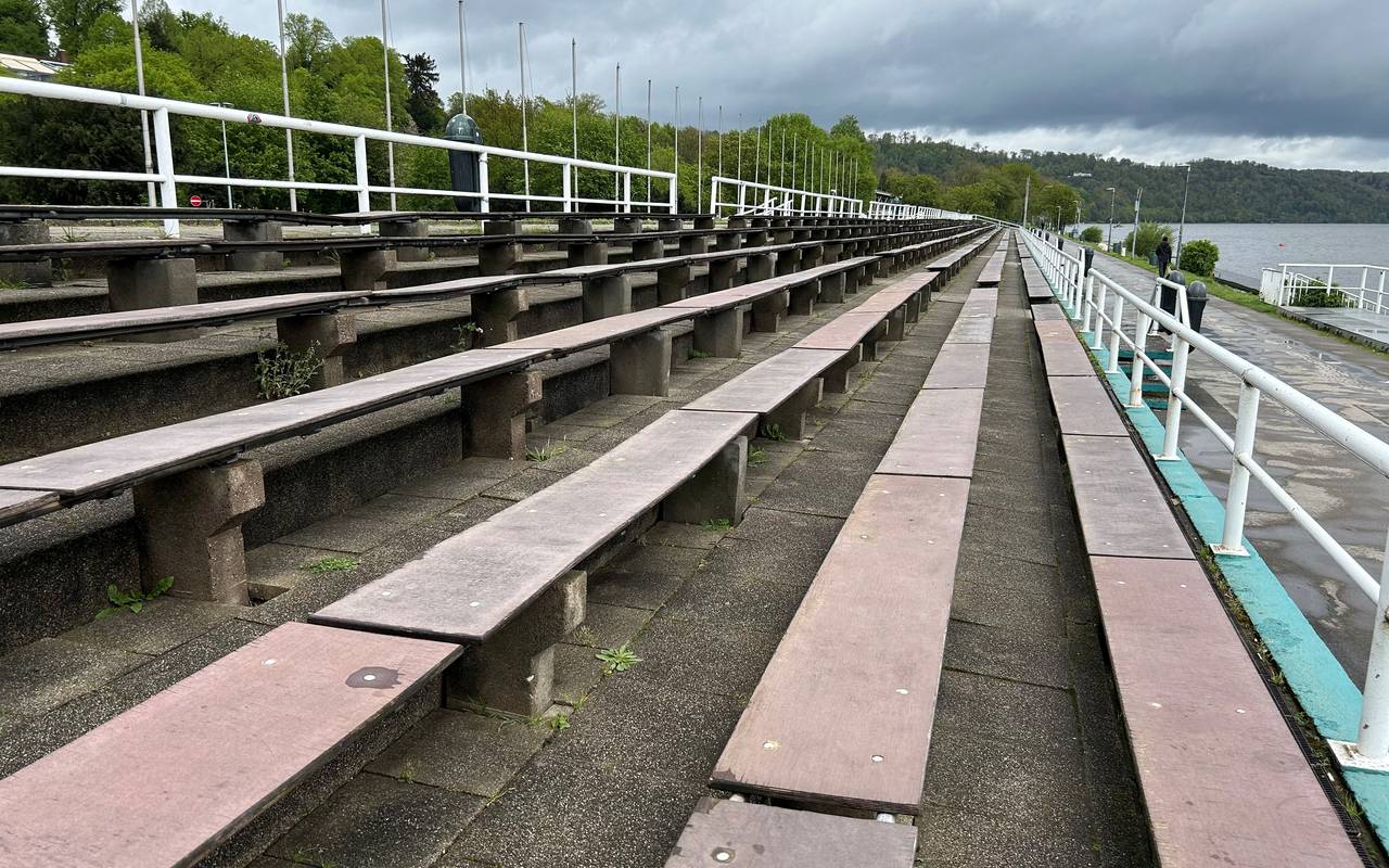 Die Tribüne ist in die Jahre gekommen, die Sitze sind marode und das Geländer auch nicht mehr schön. Viele Ruderer und Kanuten haben dort schon gesessen und bei den Regatten die Teams angefeuert. Viele Essenerinnen und Essener sitzen hier gern im Sommer und machen ein Picknick am See. Das alles hat Spuren hinterlassen. Jetzt wird der gesamte Bereich an der Regattatribüne und am Regattahaus Schritt für Schritt umgebaut. Im ersten Schritt ist die Regattatribüne dran.