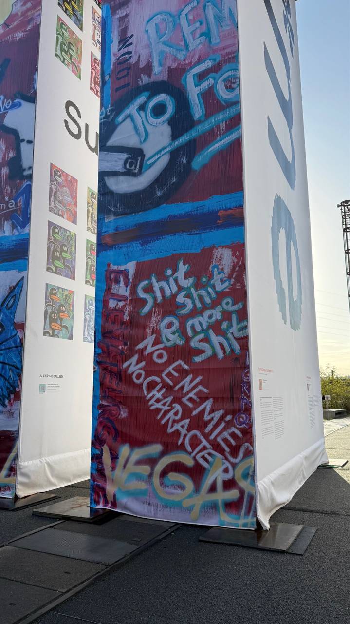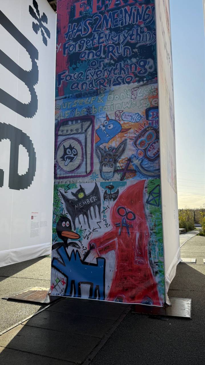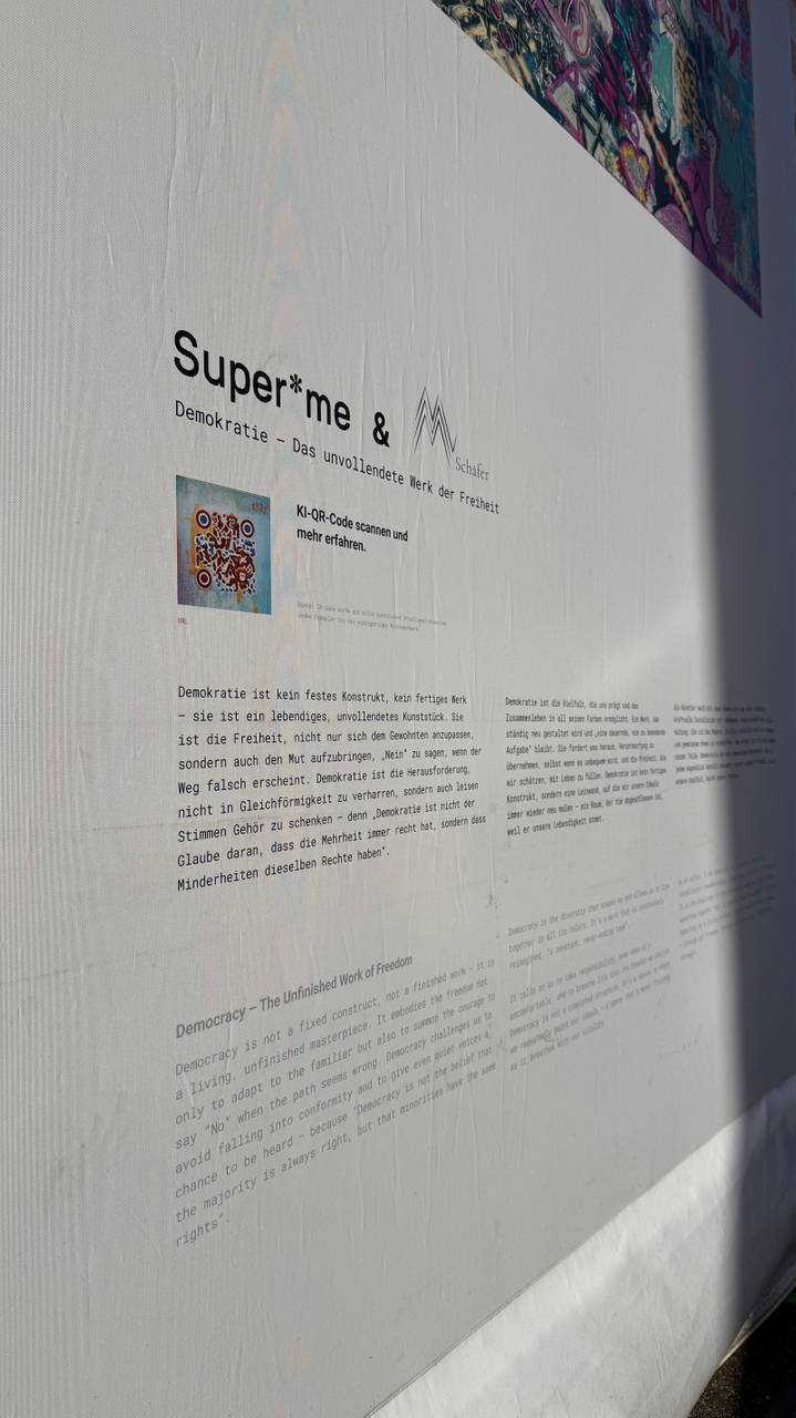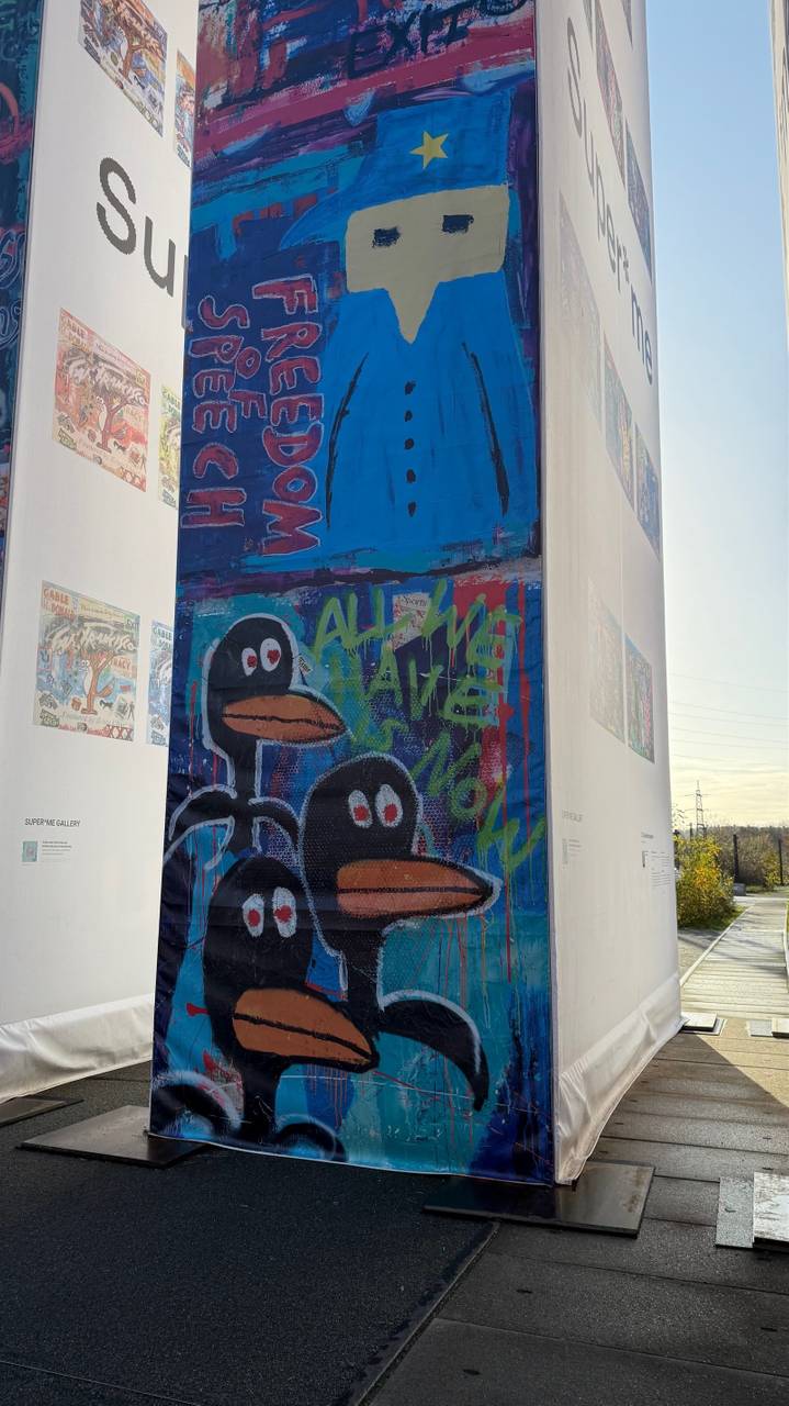 Wie bereits auf der ersten Seite, kommen auch hier verschiedene QR-Codes zum Einsatz, die Kunstwerke zum Leben erwecken. Die Kunst, die auf einer über 1.000 Quadratmeter großen Plane dargestellt ist, geht weit über reine Ästhetik hinaus, betont der Künstler Thomas Wirth, bekannt als Super*me. Für ihn ist dieses Projekt etwas ganz Besonderes: Jedes Mal, wenn er das Gelände betritt und sowohl das Global Gate als auch das gesamte Zollverein-Areal sieht, bekomme er Gänsehaut.