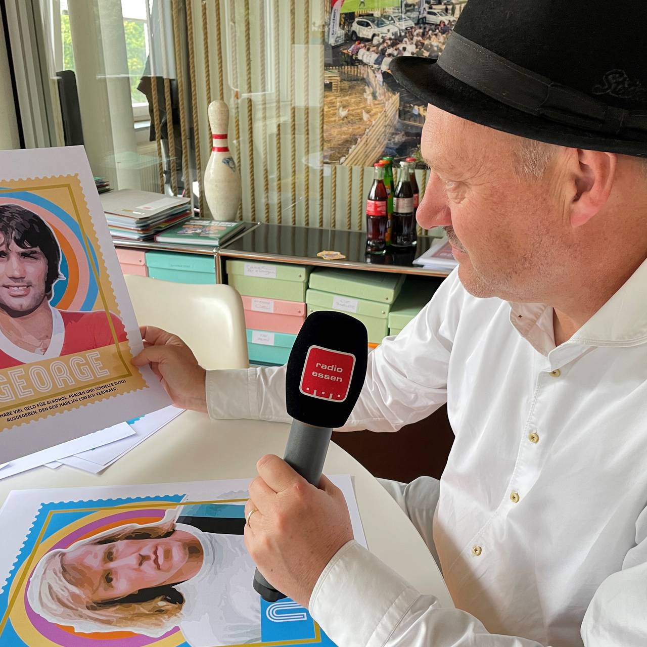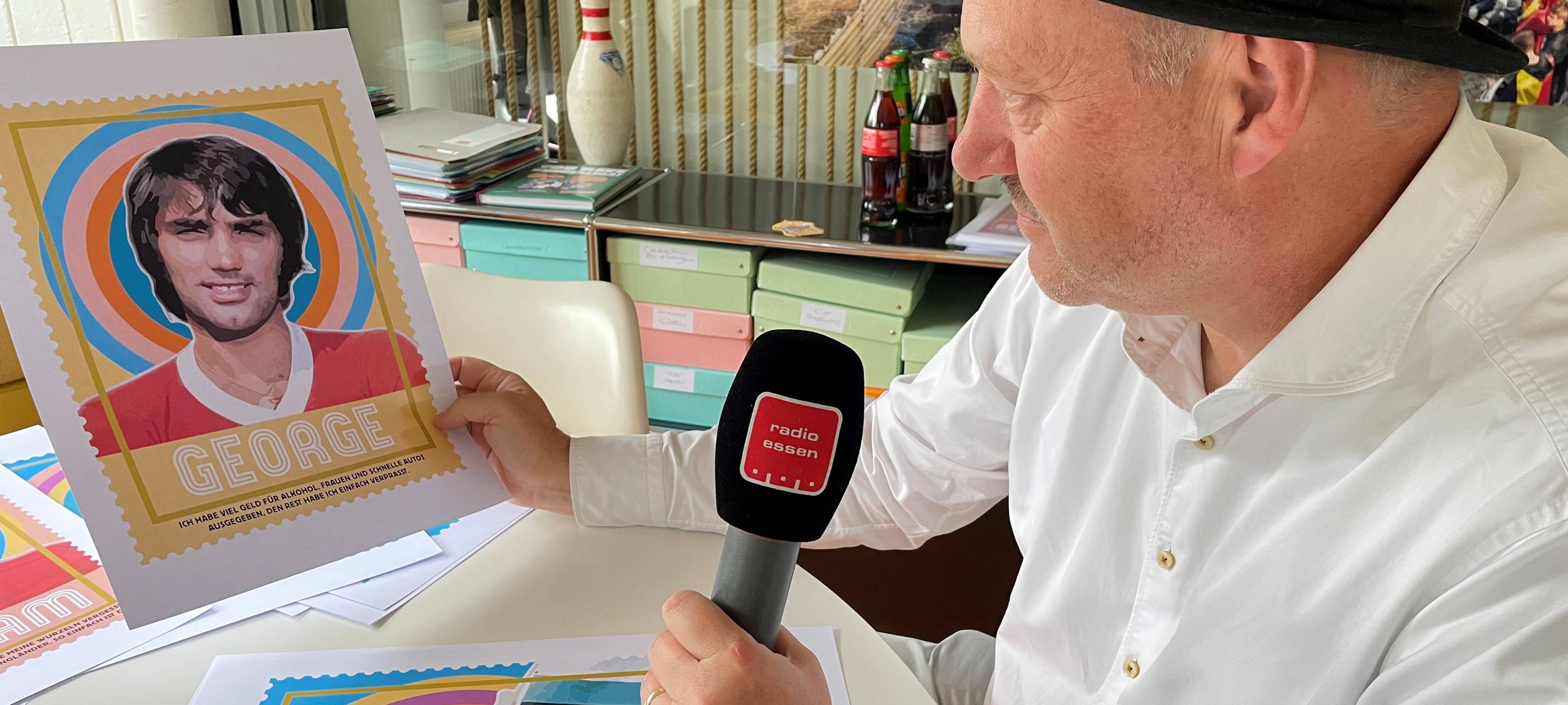 Cyriel Danier ist nur eine Kunstfigur. Dahinter steckt Thomas Siepmann, der Chef der Essener Veranstaltungsagentur TAS in Bergerhausen. Nach einem ersten Aufschlag im Kulturhauptstadtjahr und der Ausstellung "Clash of Centies" vor zwei Jahren ist er jetzt wieder da. Für seine Ausstellung: "Popstars in kurzen Hosen" im Kunstraum schulte-golt-noelte in Rüttenscheid hat er die besondere Ästhetik der Fußball-Bundesliga Sammelalben der 60er Jahr weiterentwickelt. Dazu gibt es die typischen Sprüche der 17 gezeigten Fußball-Ikonen. Wie es dazu kam, erzählt er im Radio Essen-Interview.