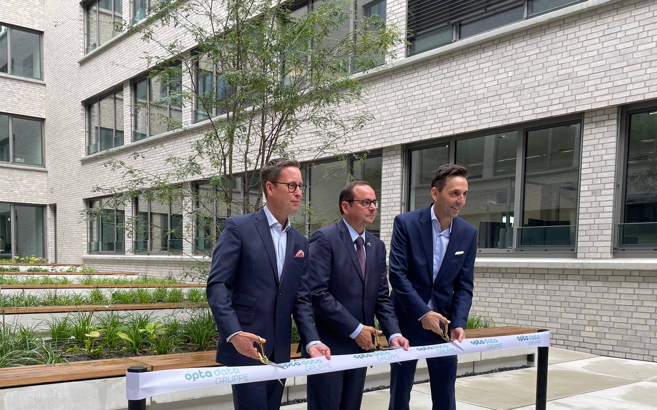 Der neue Campus in Essen soll ein Beispiel für energieeffizientes und umweltfreundliches Bauen sein, so die Opta Data Gruppe. Dazu gehören etwa eine moderne Wärmedämmung und Solaranlagen auf den Dächern. Insgesamt produzieren 862 Solarmodule Strom für die 55 E-Ladesäulen im Parkhaus und für das hauseigene Rechenzentrum. Damit laufen alle Daten und Prozesse des Unternehmens größtenteils über grünen Strom. Aber auch die Zentralisierung der Standorte in Essen hat einen positiven Effekt: die Mitarbeitenden müssen weniger durch die Stadt fahren. Darüber freut sich auch Oberbürgermeister Thomas Kufen. Er begrüßt den frischen Wind in der Gesundheitsbranche in Essen.