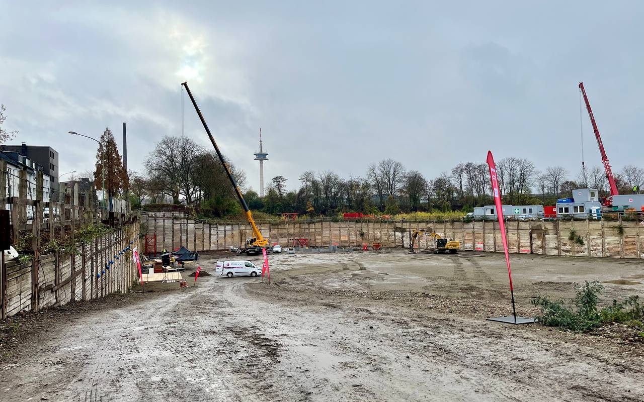 Die Immobilienwirtschaft der Stadt Essen will im Oktober 2027 in die Weststadt ziehen. Bisher sind die Büros der Immobilienwirtschaft in der Stadt verteilt. In zwei Jahren soll alles unter einem Dach sein, in modernen Büros. Deshalb ist jetzt auch die letzte große Brache im Essener Westviertel eine Großbaustelle. Das neue Kontorhausviertel liegt zwischen der Hans-Böckler und der Frohnhauser Straße. Ein Hamburger Investor baut hier, direkt neben der B224, ein Bürohaus und 104 Wohnungen. Die Baugrube ist schon ausgehoben. In zwei Jahren sollen die Büros fertig sein, kurz danach auch die Wohnungen. Insgesamt 104 Wohnungen sind geplant, die kleinsten werden 65 Quadratmeter haben, die größeren etwa 100 Quadratmeter.
