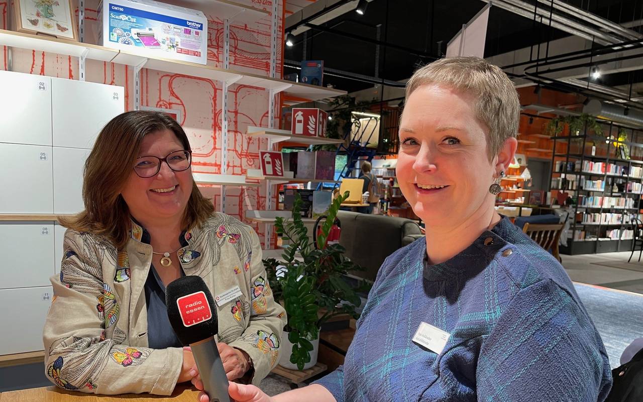 Radio Essen-Stadtreporter Timm Schröder trifft Dörte Holländer in der Bibliothek in Huttrop. Lächelnd steht sie hinter der rustikalen Theke der neuen Bücherei an der Steeler Straße. Hier war noch vor ein paar Jahren die Filiale einer Supermarktkette. Davon ist nicht mehr viel zu erkennen. Einen Wandel gab es aber auch im Leben der zweifachen Mutter. Die gelernte Heilerziehungspflegerin hat mit Mitte 40 nochmal eine Ausbildung bei der Stadt Essen gestartet. Für sie ist es eine echte Herausforderung zusammen mit vielen viel jüngeren Kolleginnen und Kollegen nochmal die Schulbank zu drücken. In unserem Interview erzählt sie mit gerunzelter Stirn, das im dritten Schuljahr auch noch Sport-Unterricht dazu kommt. Unterstützung bei ihrem Neustart hat die Borbeckerin von Berufsberaterin Anke Koller bekommen. Bei der Agentur für Arbeit kümmert sie sich speziell um die Berufsberatung für Erwachsene. Sie freut sich über den erfolgreichen Neustart ihrer Kundin.