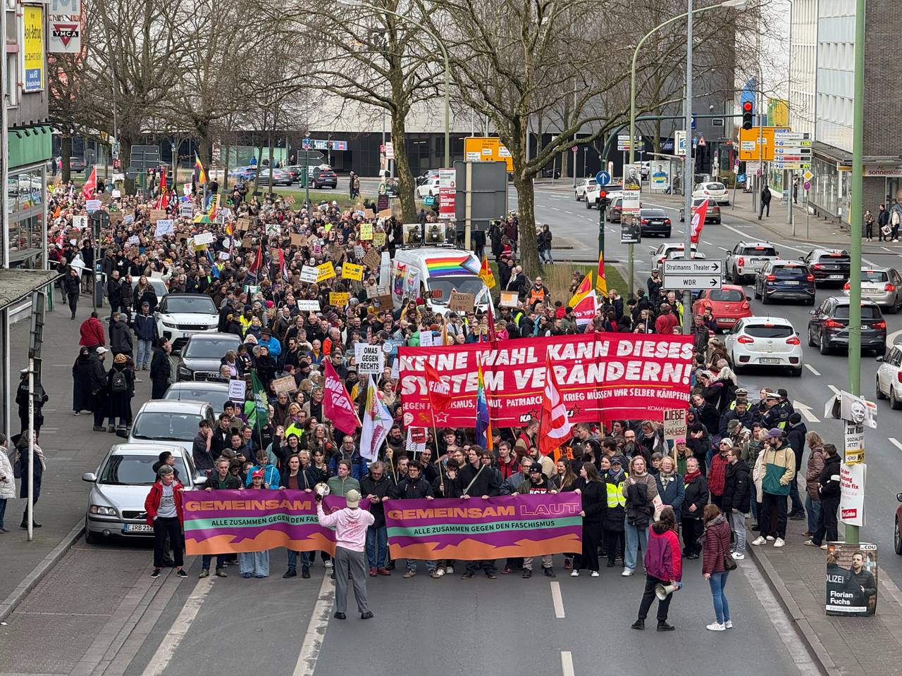 Los ging es um 14 Uhr mit verschiedenen Reden auf einer Bühne in der Grünen Mitte. Ab 15 Uhr zogen die Demo-Teilnehmenden durch die Essener Innenstadt. Die Demo richtete sich dabei nicht nur gegen die AfD. Die Rhetorik und Politik der bürgerlichen Mitte übernehme die Positionen der AfD und normalisiere diese, schreiben die Veranstalter auf ihrer Website. Deshalb richte sich die Demonstration auch gegen die aktuelle Politik der CDU/CSU.