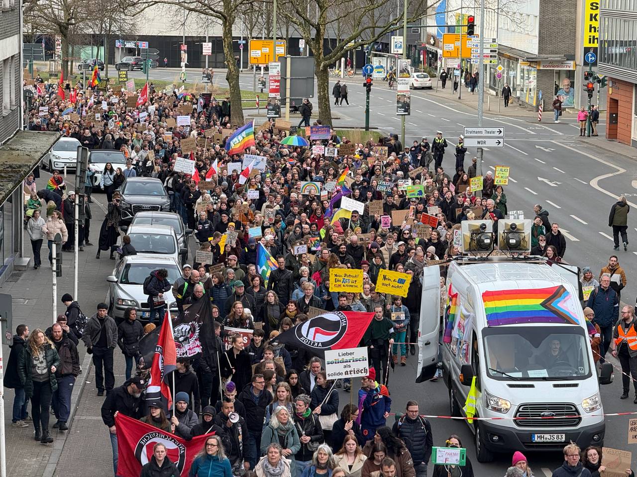 In Essen gab es am Samstag (22. Februar) nochmal eine große Demonstration gegen Rechts. Einen Tag vor der Bundestagswahl war es vielen Demonstrantinnen und Demonstranten wichtig, Flagge zu zeigen.