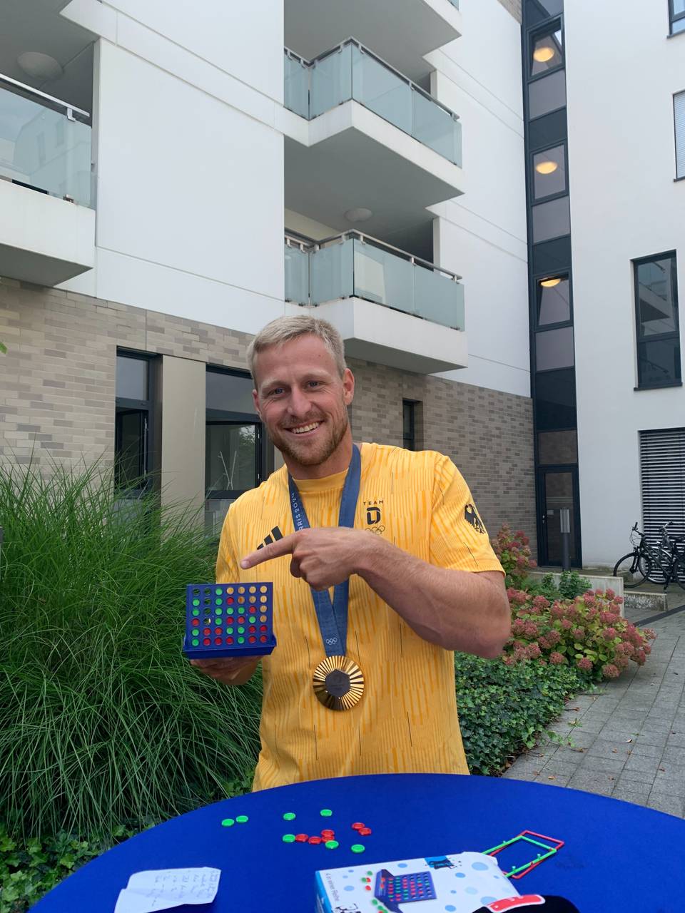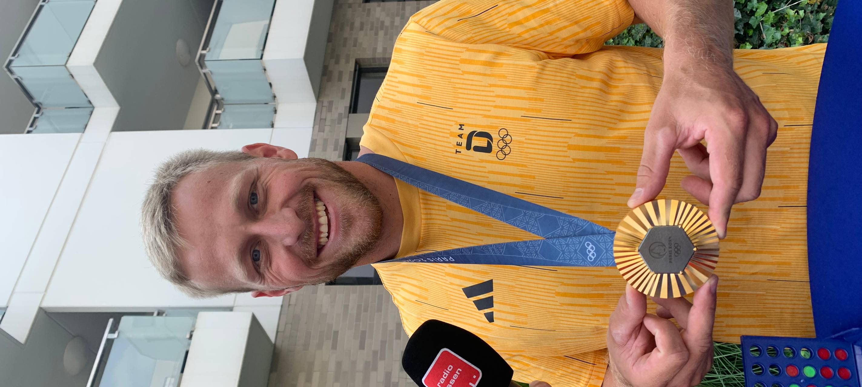 Mit seiner inzwischen vierten Goldmedaille ist Max Rendschmidt von der KG Essen wieder zurück in der Stadt. Er hat im Vierer-Kanu in Paris die Goldmedaille geholt. Am Rande eines Empfangs in Essen hat ihn Radio Essen-Stadtreporter Timm Schröder herausgefordert. Allerdings nicht zum Paddeln, sondern zu einer Runde "Vier gewinnt". Dabei muss man eine Reihe mit vier Kreisen in gleicher Farbe in ein Gerüst bekommen. Das darf senkrecht, waagerecht oder diagonal sein. Bei dem Spiel gibt es einige Parallelen zu Rendschmidts Olympia-Sport, zum Beispiel was die Taktik angeht. In beiden Fällen muss der Gegner ganz genau im Blick behalten werden.