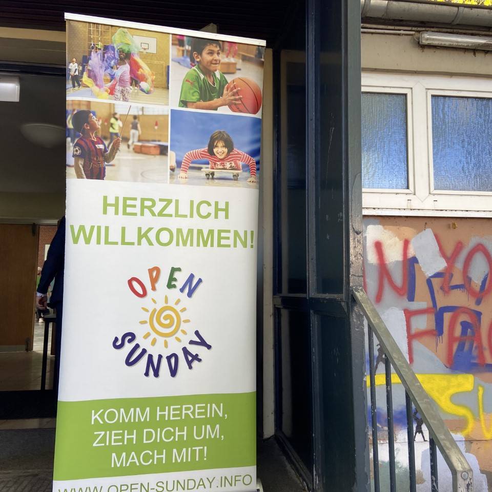 Statt geschlossener Türen soll es jetzt weiterhin mehr Sportangebote für Kinder geben. Bereits neun Schulen machen beim Open-Sunday in Essen mit. Hier findet Ihr eine Übersicht der Schulen, die am Open-Sunday teilnehmen. Das Projekt ist hauptsächlich für Kinder zwischen 6-12 Jahren. Unsere Radio-Essen Stadtreporterin hat sich den Open-Sunday mal angeschaut. Schon von draußen hört man die Kinder rennen, toben und schreien. In der Turnhalle wurde ein Bewegungsparcours mit verschiedenen Stationen aufgebaut. Hier gibt es zum Beispiel die Möglichkeit an Ringen zu Turnen, zu balancieren oder zu klettern. Die Kinder können sich auch selbst mit Seilspringen oder Hula-Hoop beschäftigen. Draußen wurde in der Sonne auf einer großen Wiese Fußball gespielt. Oberstufenschüler*innen und Studierende sind als "Sport-Coaches" für die Kinder da. Sie erklären die Aufgaben, helfen bei Schwierigkeiten und haben ein offenes Ohr für Probleme. Es fällt auf, dass die meisten Kinder die Coaches kennen und Ihnen vertrauen. Schulleiterin Barbara Wittenberg ist begeistert, dass das Projekt jetzt auch an ihrer Schule umgesetzt wird. Sie bemerkt, dass die Kinder sich schon viel besser bewegen können und immer wieder Neues dazulernen. Auch den Kinder mit denen wir gesprochen haben, gefällt das Projekt. Sie freuen sich, auch am Wochenende ihre Freunde sehen zu können und haben Montags in der Schule immer etwas zu erzählen. Manche Kinder nehmen jede Woche am Open-Sunday teil.