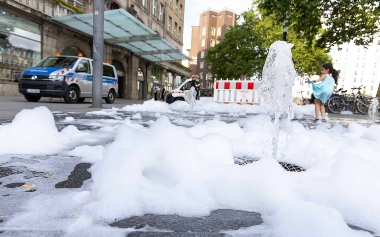 Aus einem Brunnen in Essen kam am Donnerstag (11.Juli) ganz viel Schaum. Wer dafür verantwortlich ist, steht noch nicht fest.