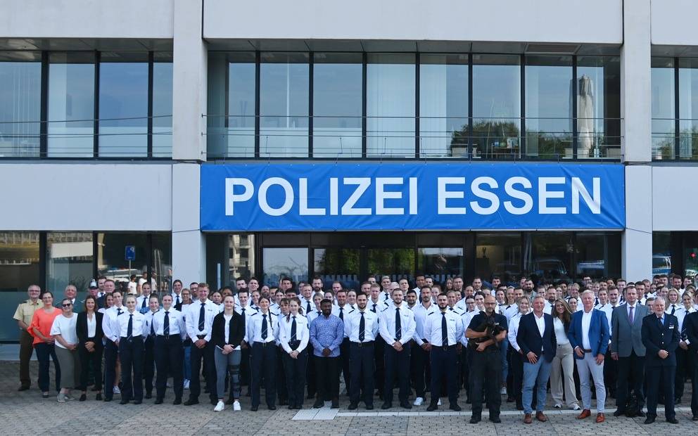 Die Polizei in Essen und Mühlheim begrüßt 147 neue Mitarbeiterinnen und Mitarbeiter. Sie verstärken die Polizei in verschiedenen Bereichen. Der Großteil hat die Ausbildung an der Fachhochschule absolviert und arbeitet jetzt als Polizist oder Polizistin. Weitere Beamte sind von anderen Dienststellen nach Essen versetzt worden. Wieder andere verstärken die Essener Spezialeinheiten. So gibt es einen leichten personellen Zuwachs im Vergleich zu den vergangenen Jahren. Zum Start haben alle ihren Diensteid abgelegt und sind zusammen feierlich vereidigt worden.