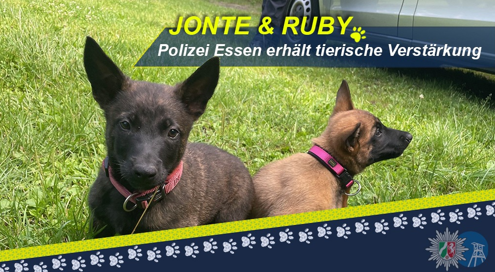 Außerdem gibt es auch neue tierische Kollegen. Für zwei Welpen beginnt die Ausbildung zum Diensthund. Auch die vierbeinigen Kollegen wurden feierlich begrüßt. Jonte und Ruby sind Geschwister und stammen aus der eigenen Hundezucht der Polizei NRW.