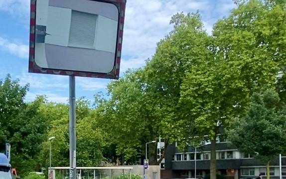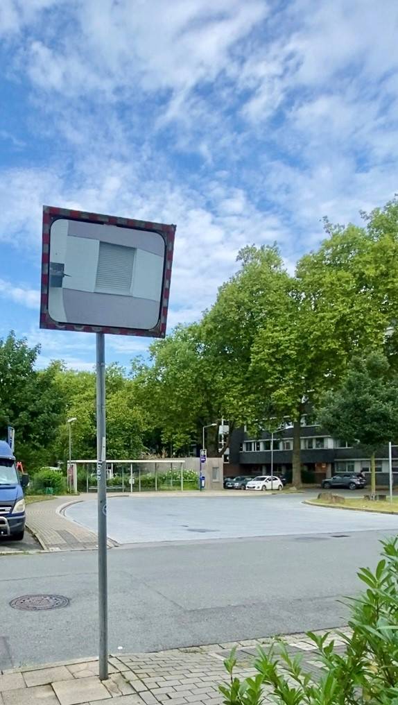 Der Spiegel vor der Tür erinnert an die Polizeiwache