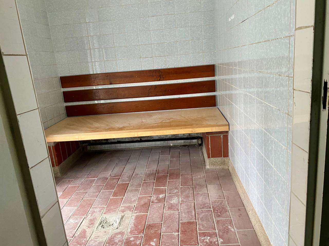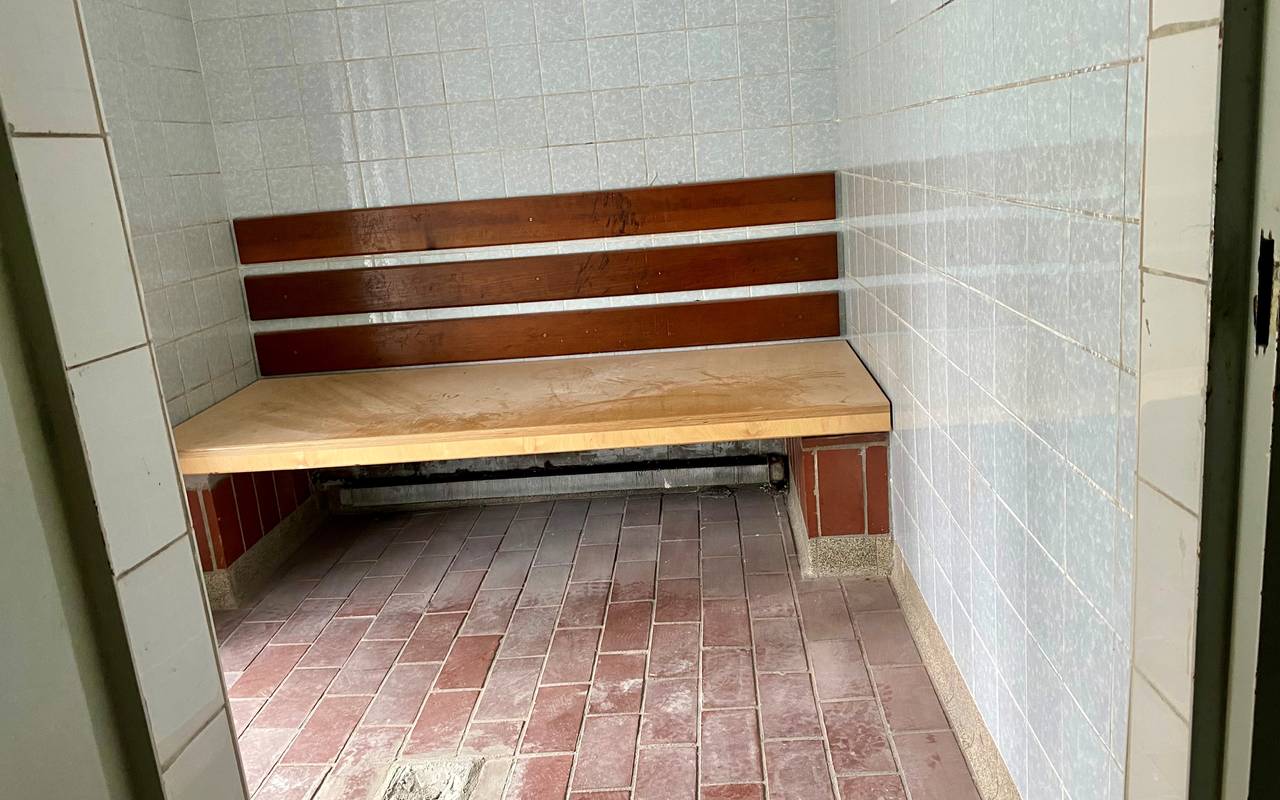Im hintersten Teil der Wache war eine kleine, gekachelte Zelle. Wer randaliert hat, musste in dieser Zelle warten, bis er abgeholt und zum Präsidium gebracht wurde. Das hat meist nicht lange gedauert. Aber wenn sehr viel los war, konnte es auch passieren, dass ein Randalierer auch einige Stunden in der Zelle warten musste. Dort ist eine harte Holzpritsche. Die Beamten gaben den Eingesperrten eine warme Decke, damit sie nicht frieren mussten. Einige hätten auch ihren Rausch auf der Holzpritsche ausgeschlafen. Bisher wurde der gekachelte Raum noch nicht abgerissen. Wer die Wohnung kauft, kann selbst entscheiden, ob er den 4 bis 5 Quadratmeter großen Raum drin lässt oder die Wände herausnimmt.