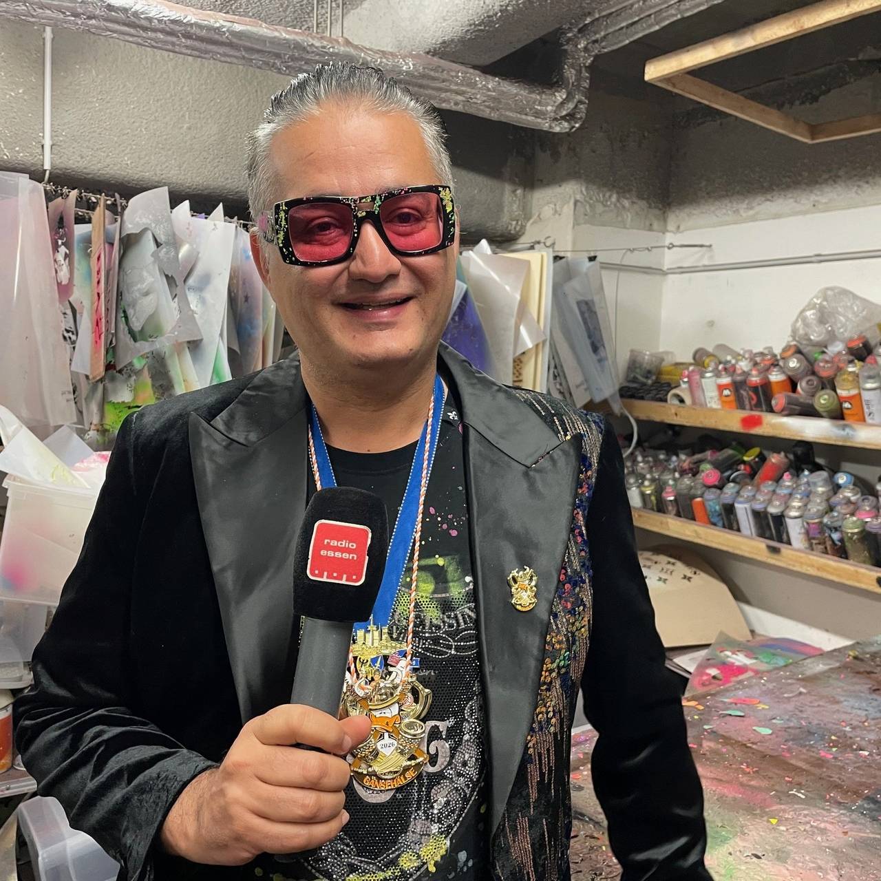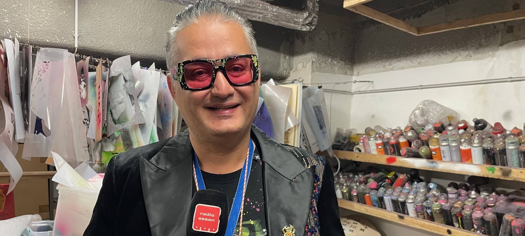 Die Anfrage der Essener Karnevalisten zur Gestaltung des Wagens des Jugendprinzenpaares erreichte Sharyar Azhdari bei einem Aufenthalt in Dubai. Das war vor zehn Tagen. Jetzt ist er wieder zurück in Essen und hat nur einen Tag für die Vorbereitung. Radio Essen-Stadtreporter Timm Schröder trifft den bekannten Pop-Art-Künstler in seinem Atelier in der Lindengalerie.